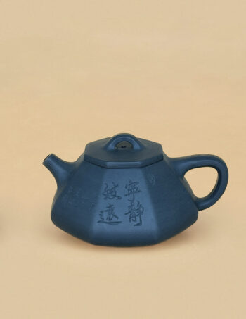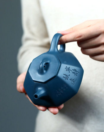 Нестандартный восьмигранный Каменный Ковш на трёх невысоких ножках – современное стильное видение классической формы Лю Фан Ши Пяо 六方石瓢 (Шестигранный каменный ковш). Геометричные отточенные формы создают ощущение законченности и чёткости, яркий синий цвет притягивает взгляд.