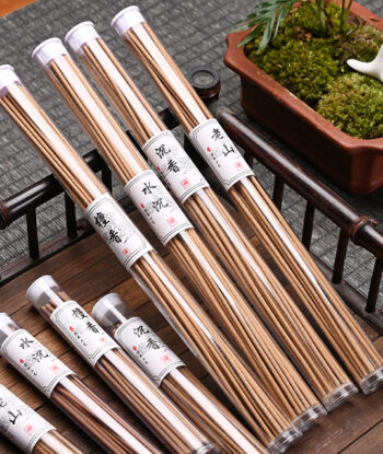 Китайские благовония значительно отличаются от индийских по стилю. Гораздо более мягкие натуральные ароматы и минимальное количество дыма – тонкая прозрачная белая струйка. Безосновные палочки делаются на основе перетёртых натуральных компонентов (смола, цветы, масла, листья, ароматические травы, дерево, специи, корни и т.д.), в данном случае на основе смолы и порошка дерева Уд.