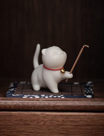Подставка для безосновных благовоний и благовоний с основой. Милый миниатюрный котик с дырочкой в левой лапе также послужит хорошей чайной фигуркой для чабани.