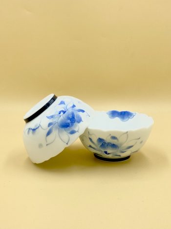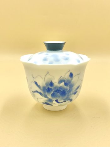 Изящная гайвань с подглазурной ручной росписью кобальтом цветка Лотоса, символом чистоты и совершенства.