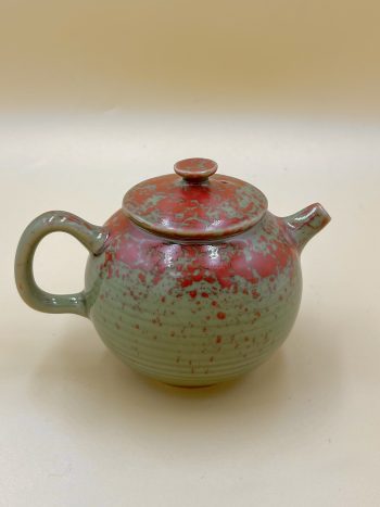 Вес чайника 197 гр., сито птичья клетка с маленькими отверстиями, часть отверстий нерабочая – дырочки залиты глазурью. Крышка без притертости, капли из-под крышки при сильном наклоне. Пологий тонкий слив 15 секунд.