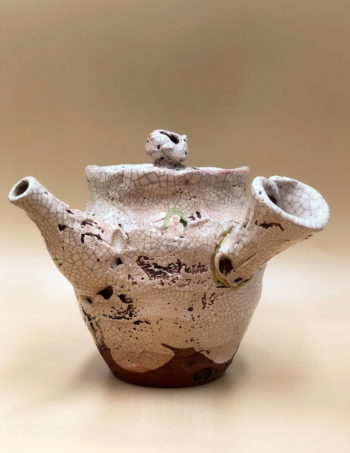 Антикварный чайник, керамика Ракудзан. Восстановление техникой кинцуги (“золотой шов”).