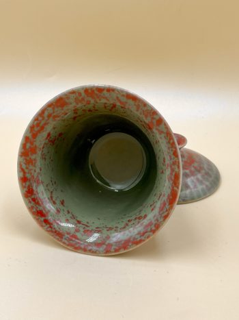 Вес гайвани 215 гр., высота 9 см, рабочий объем 120 мл. Яркая зеленая основа глазури и более матовые красные пятна. Гладкая глазурь имеет текстурный рельеф с выемками.