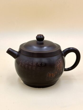 Классический по окрасу чайник керамики Нисин из Цзиньчжоу, провинция Гуанси. На Боку иероглиф Дзен 禅 и отрывок из Сутры Сердца.
