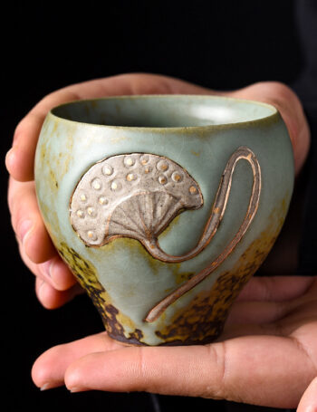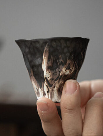 Переливающаяся в серебро и тёмное золото элегантная небольшая пиала. Лёгкая – 65 гр, рабочий объём 50-60 мл., средняя толщина стенки 2 мм. Практичная и универсальная в использовании – отлично подойдет в чаепитии с чайными щипцами. Вытянутая форма отлично передаёт аромат, глазурь внутри пиалы не искажает вкус.