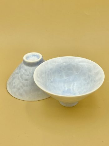Тонкая пиала из белого фарфора дэхуа с ледяной глазурью, имеющей рисунок инея зимой на окнах. Относятся к собирательной категории керамики Яо Бянь, которая меняется при обжиге.