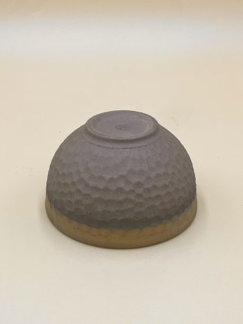 Небльшая шершавая пиала с толстой стенкой 3-4 мм. Имитация отбитой бронзы, матовая песчаная текстура с бронзовым отблеском по кайме.