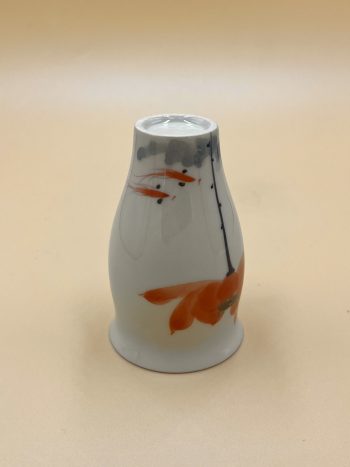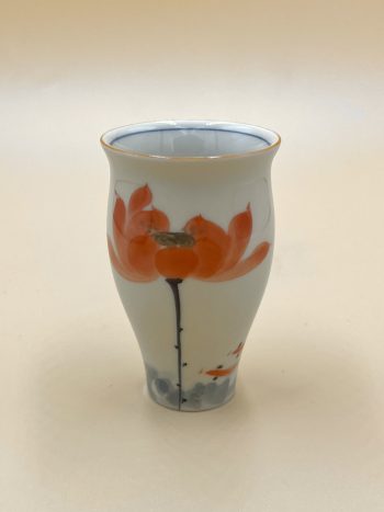Тонкостенная 1-2 мм. пиала с глянцевой глазурью и ручной подглазурной росписью красного цветка лотоса.