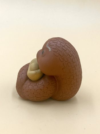 Сделан из исинской глины бежево-серого оттенка с песчаными вкраплениями жёлтого цвета, детали и текстура шкурки проработаны вручную.