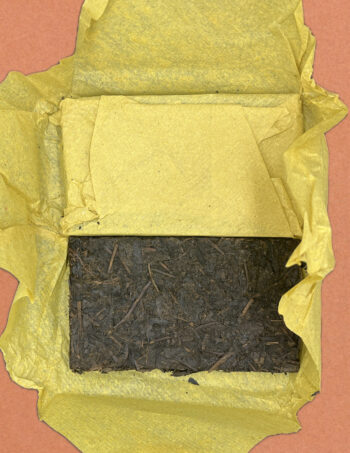 Ручное изготовление и прессовка, кирпичи завёрнуты вручную в желтую бумагу.