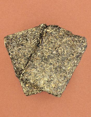 Внешний вид: крупный лист лист плотно спрессован в кирпич, сложно отделяется. Цвет темно-зеленый, даже черно-зеленый. На первый взгляд сырье довольно грубое, четко видны черенки и веточки.