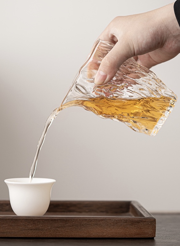 Тяжёлый устойчивый Гундаобэй в стиле “мятое стекло”, похож на огранённый кусочек льдины. Толстые стенки, долго сохраняет тепло и удерживает аромат. На свету эффектно преломляет чай. Предельный объём 250 мл, рабочий объём 150-200 мл. Вес от 230 до 250 гр.
