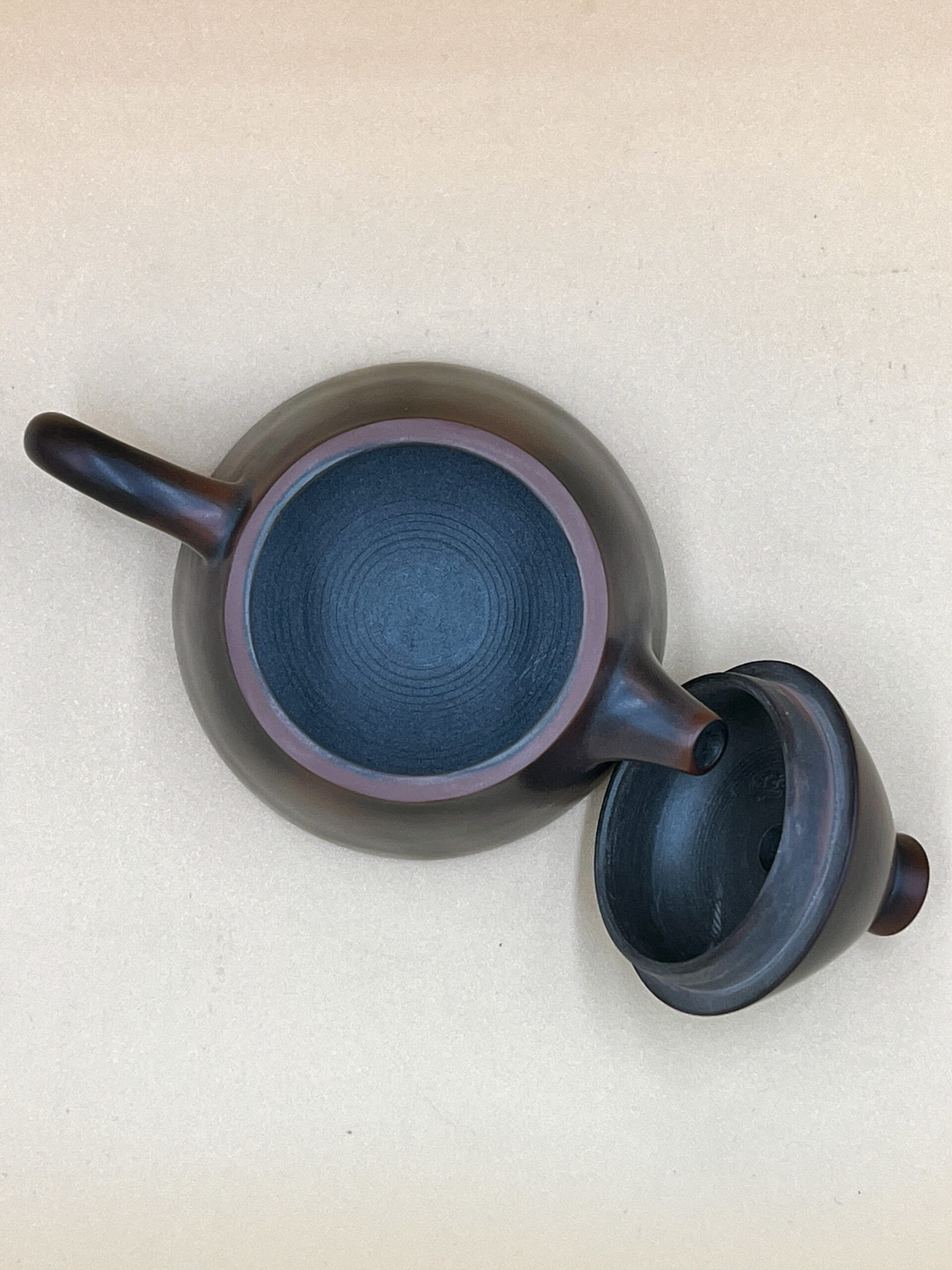 Увесистый, глянцевый, с ярким металлическим отзвуком при соприкосновении крышки с телом чайника. “Железистая” характерная для нисин глина с оттенками меди.