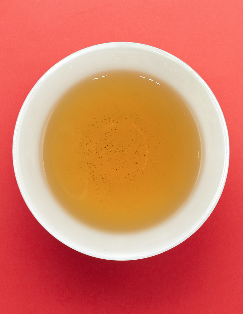 Цвет первого заваренного чая золотисто-желтый, слегка красноватый, прозрачный и яркий, в дальнейшем по мере увеличения числа заварок цвет настоя сначала углубляется, затем постепенно светлеет и остается желтым после пяти-шести заварок;