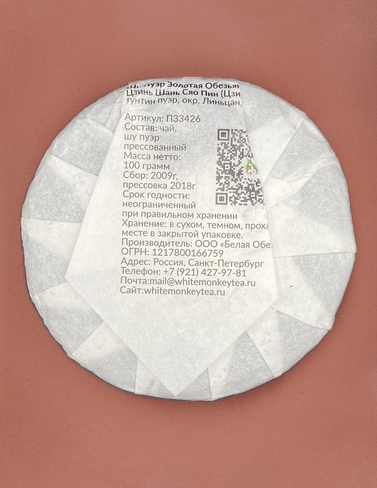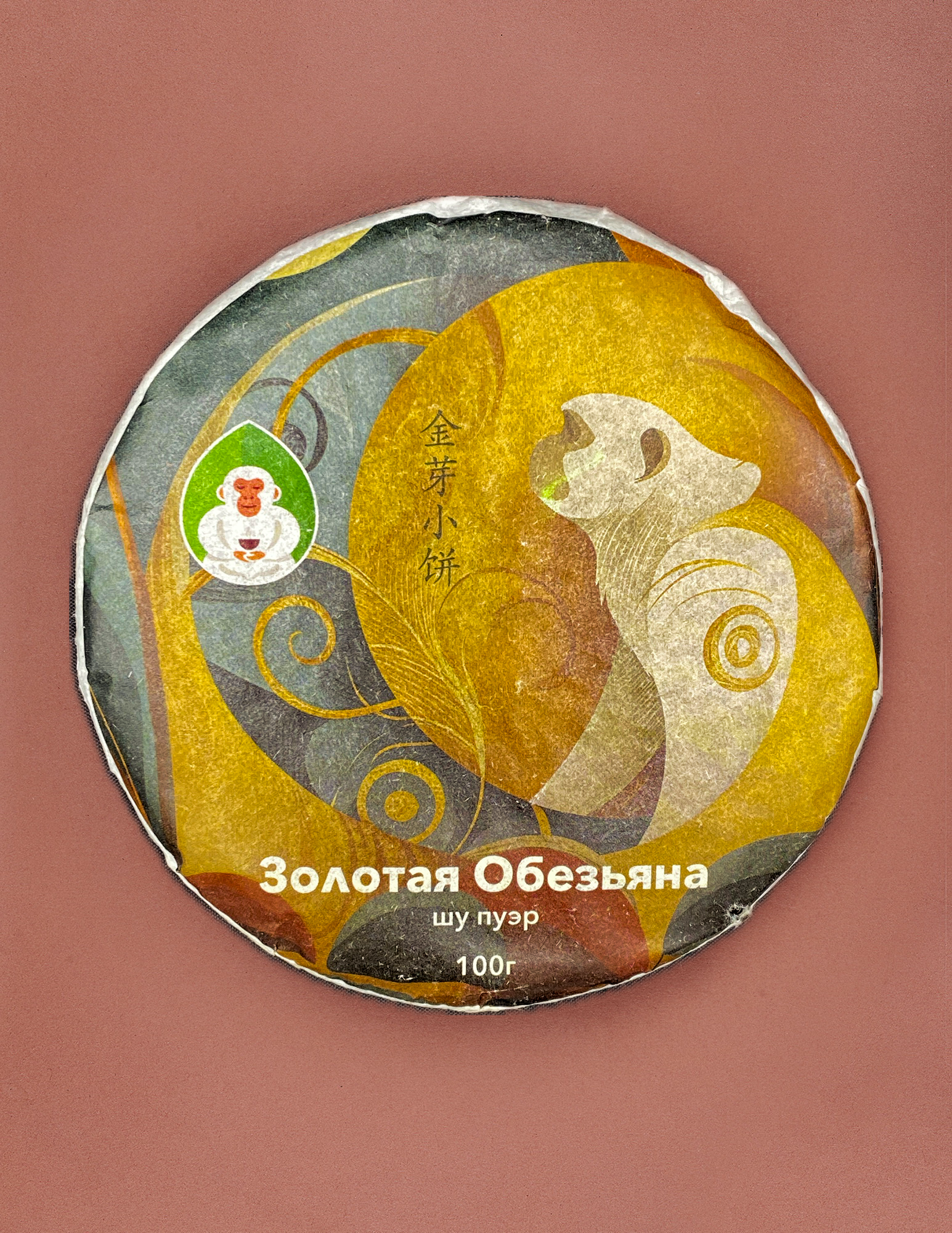 ▸ Блин плотной прессовки. Сырьё состоит из небольших темно-древесных листьев и золотистых ароматных почек.