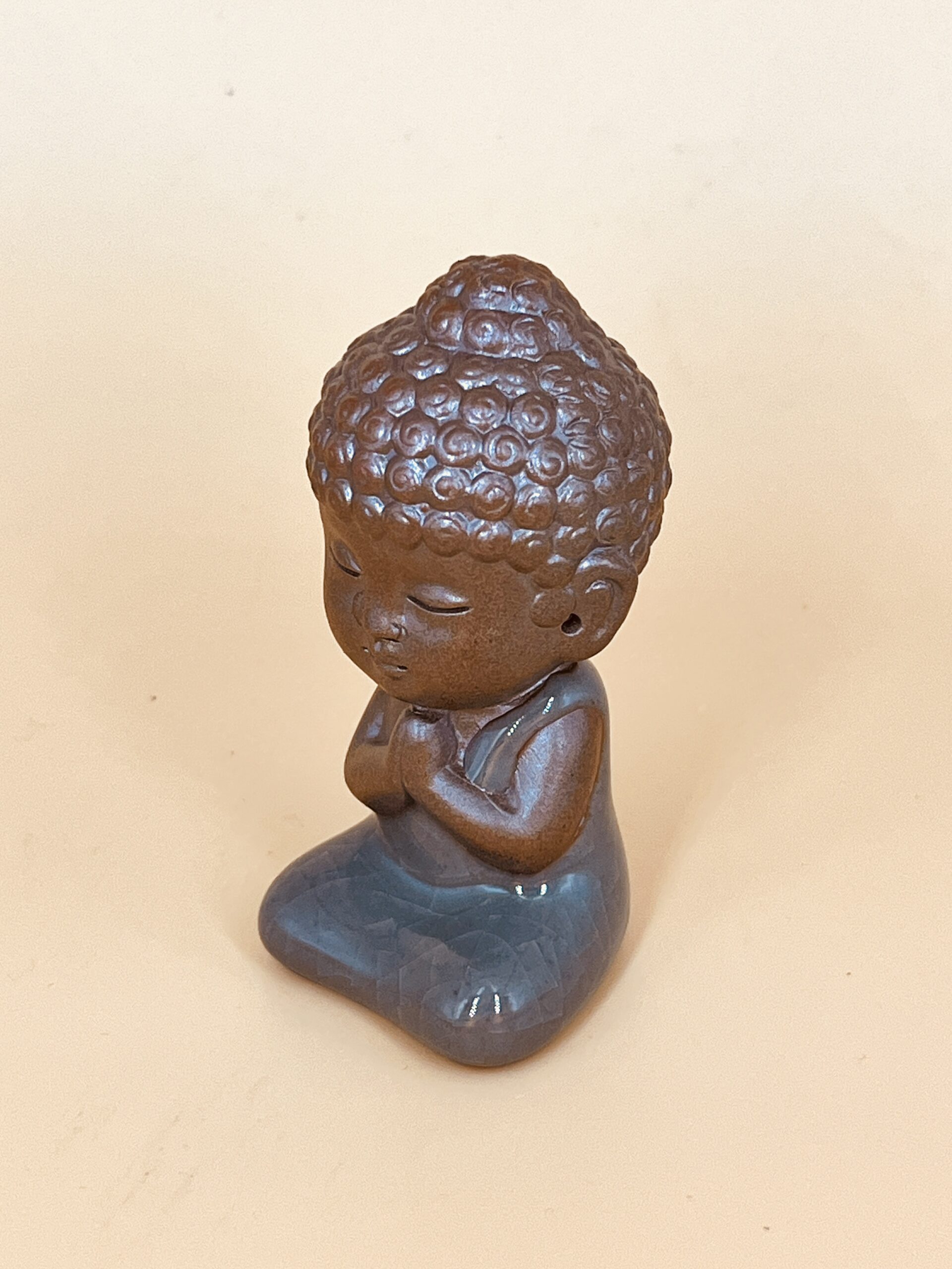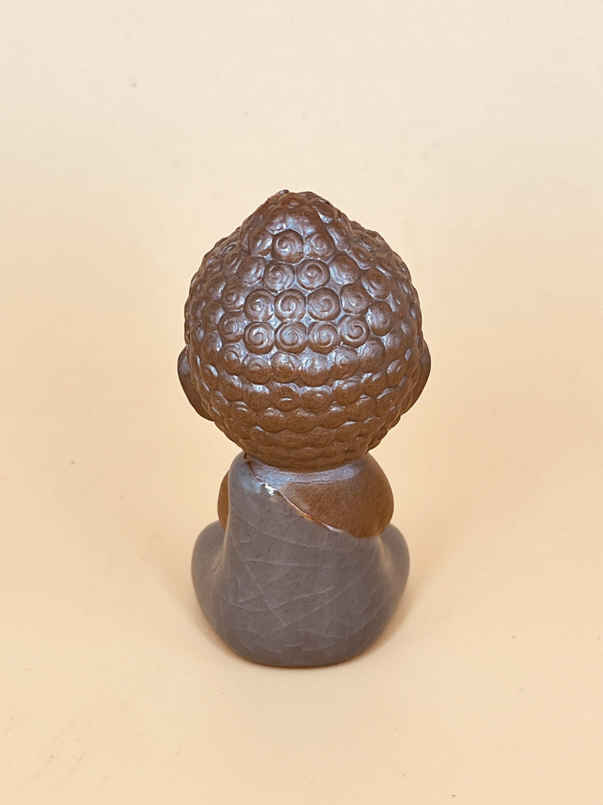 Небольшая чайная фигурка весом 130 гр. Отсылает нас к монаху, жившему в 6 в. По буддийской легенде о появлении чая, Бодхидхарма долгое время медитировал в пещере. Тяжелые веки его слипались, он изо всех сил боролся со сном, но глаза предательски закрылись. Проснувшись и осознав, что не выдержал концентрации и поддался сну, Бодхидхарма рассердился на самого себя, схвати свои веки и, вырвав их, бросил на землю.