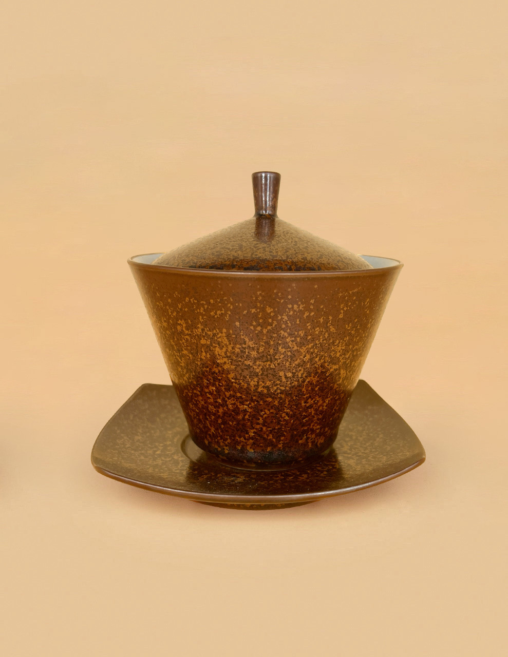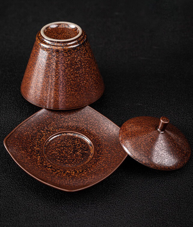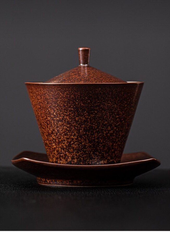 Гайвань нестандартной вытянутой геометричной формы, средняя толщина стенки, керамика Цзиндэчжэнь. Чёткие линии, строгая элегантность. Требует тонкого обращения, хорошо подойдёт для небольшой руки. Церемониальный яркий вариант, делает заваривание плавным и аккуратным.