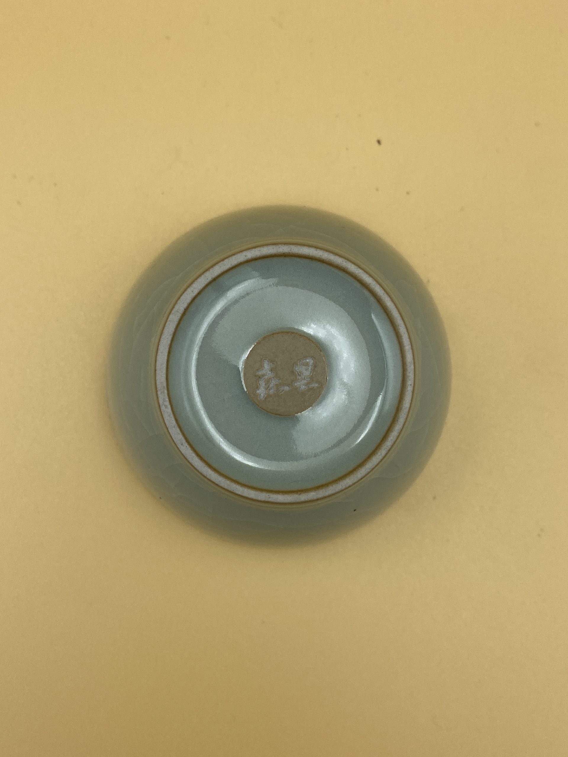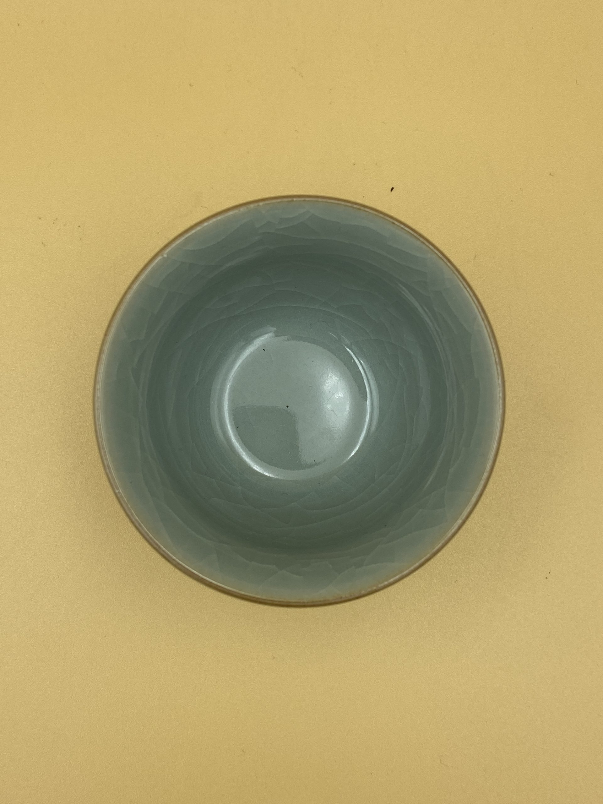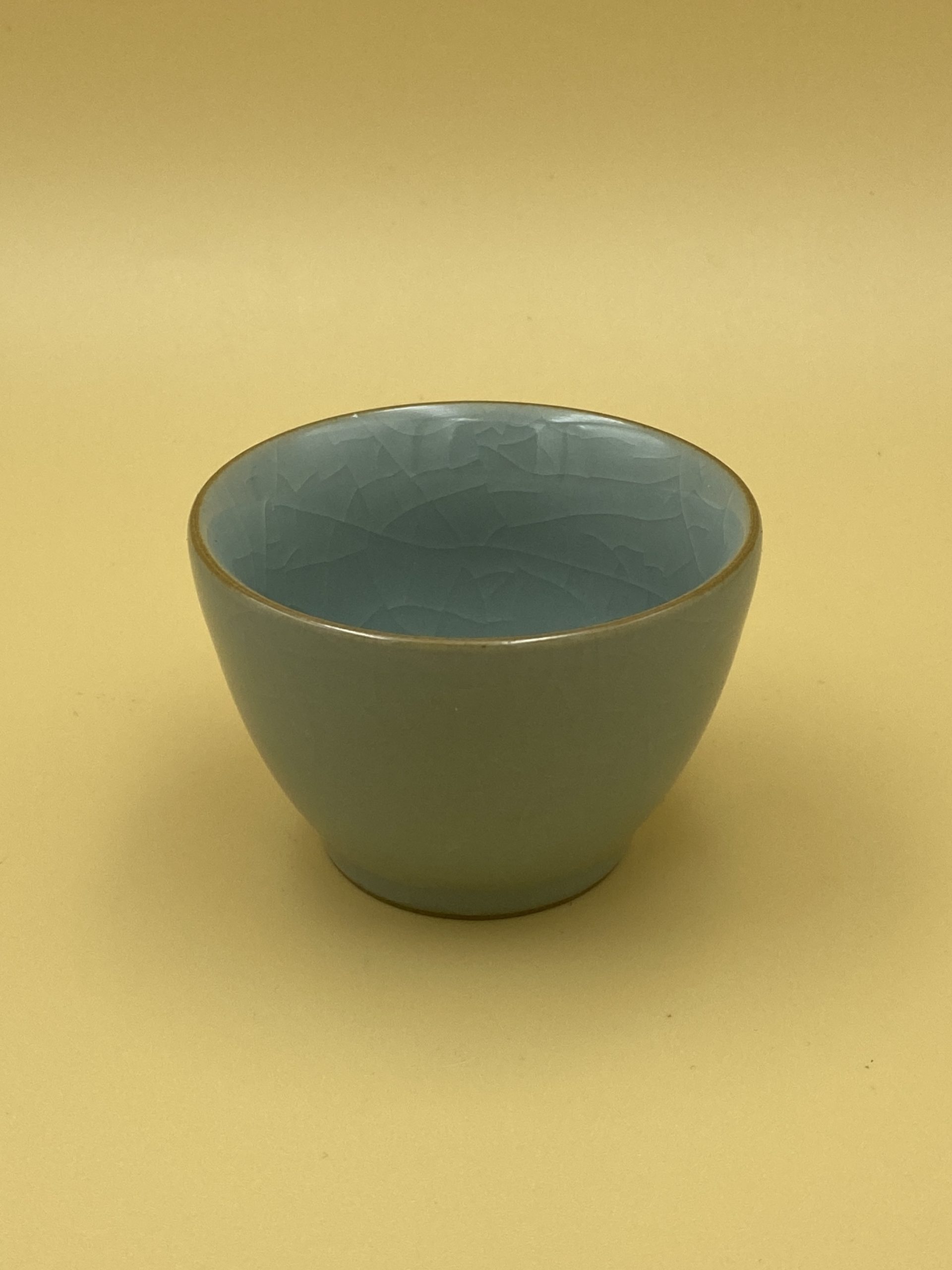 Небольшая пиала пыльно-голубого оттенка, вес 100 гр., средняя толщина стенки, объем 80 мл., рабочий объём 60 мл.