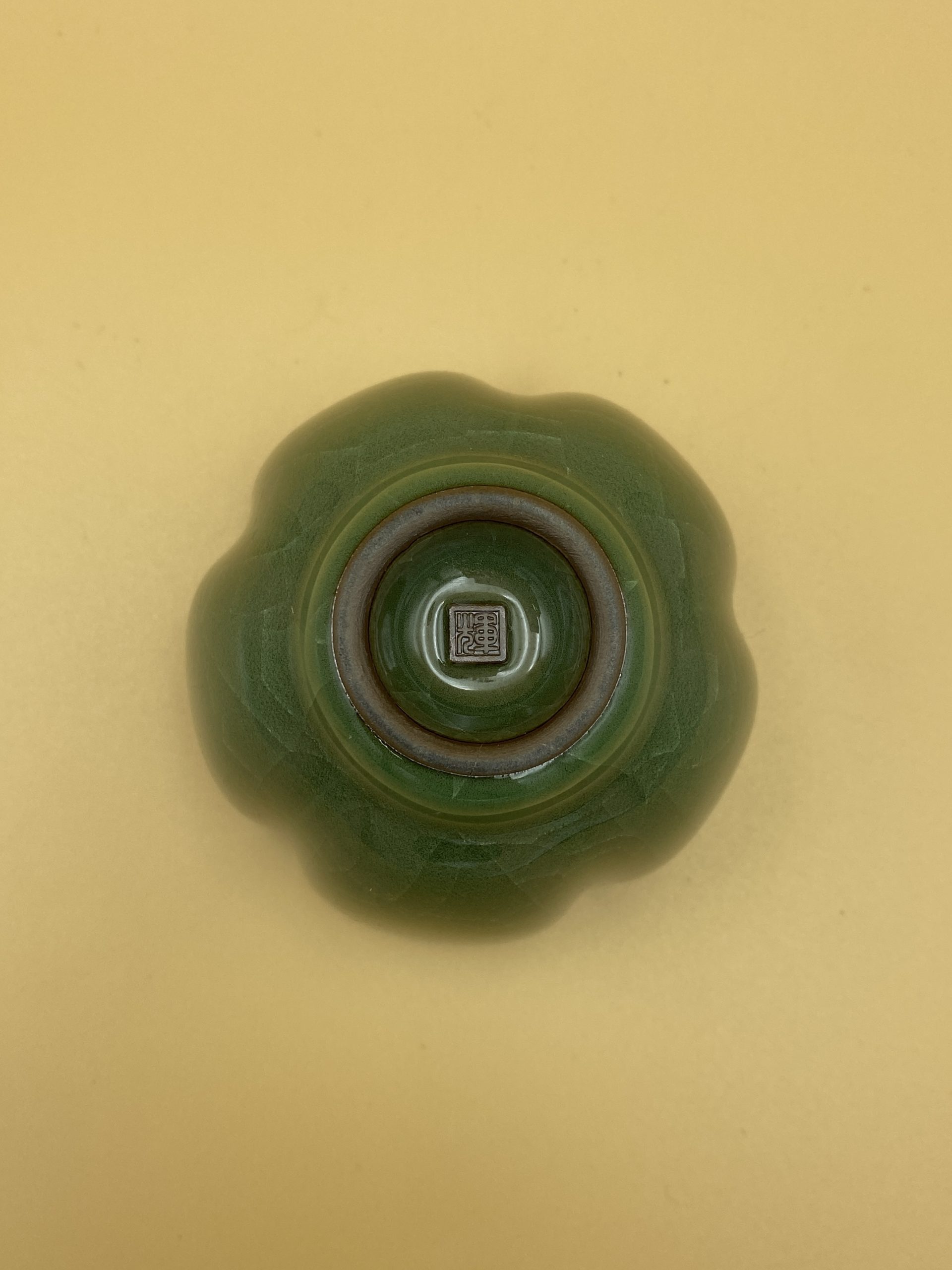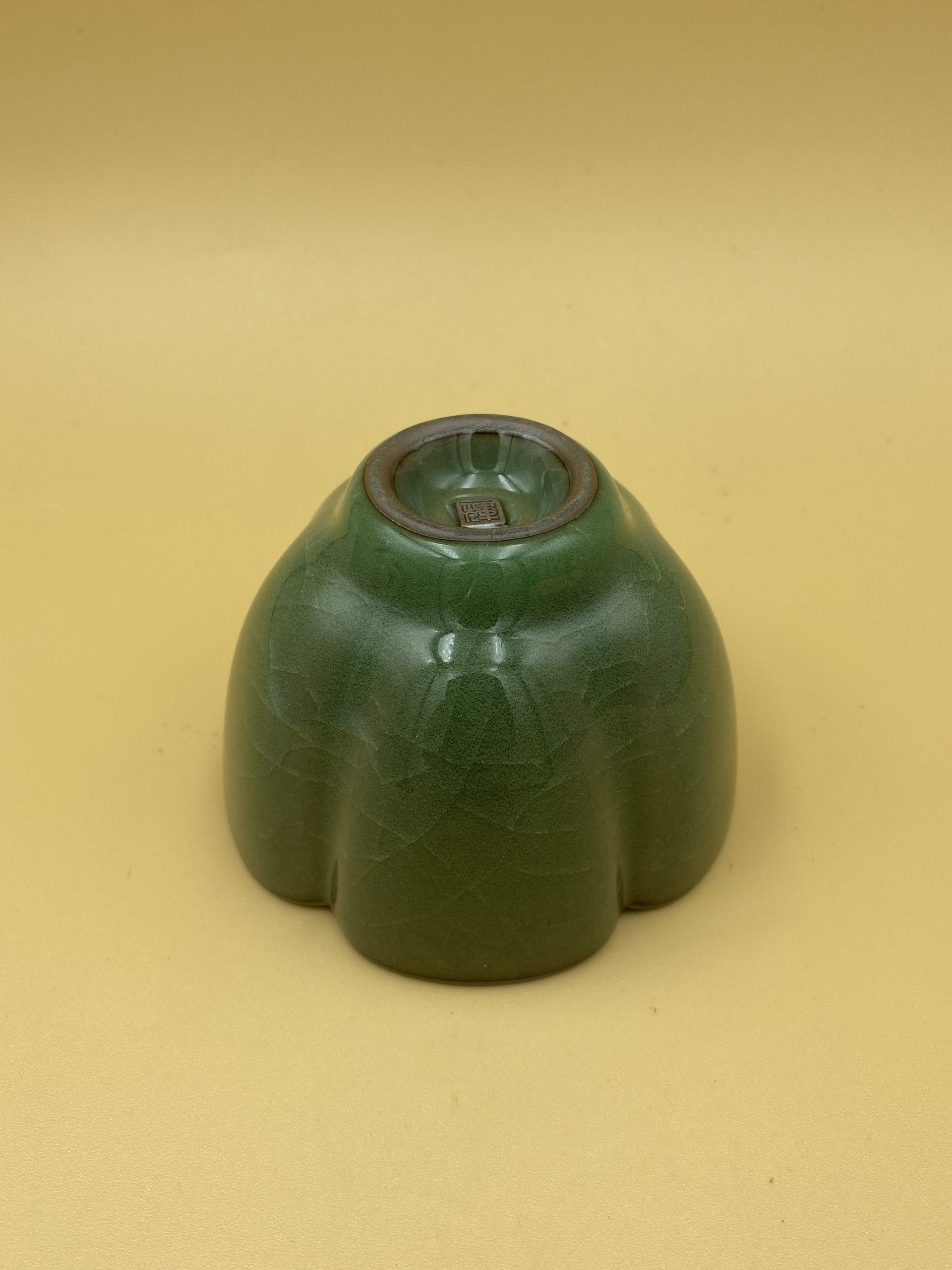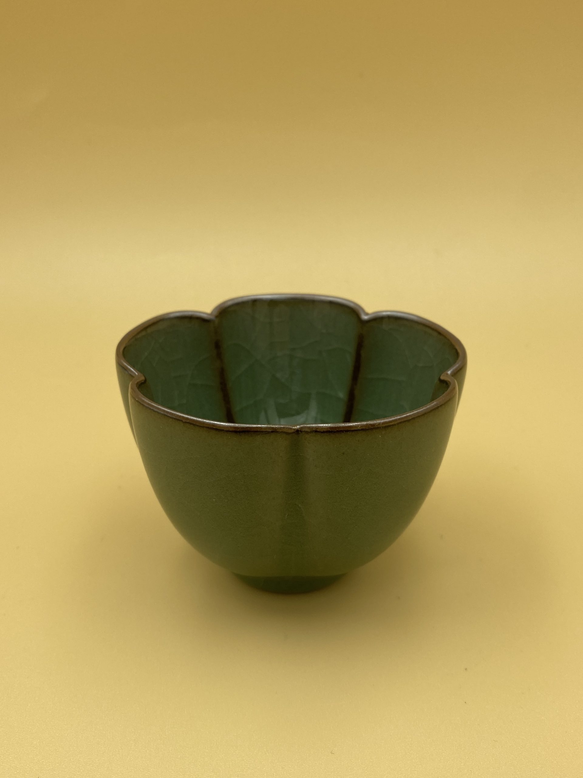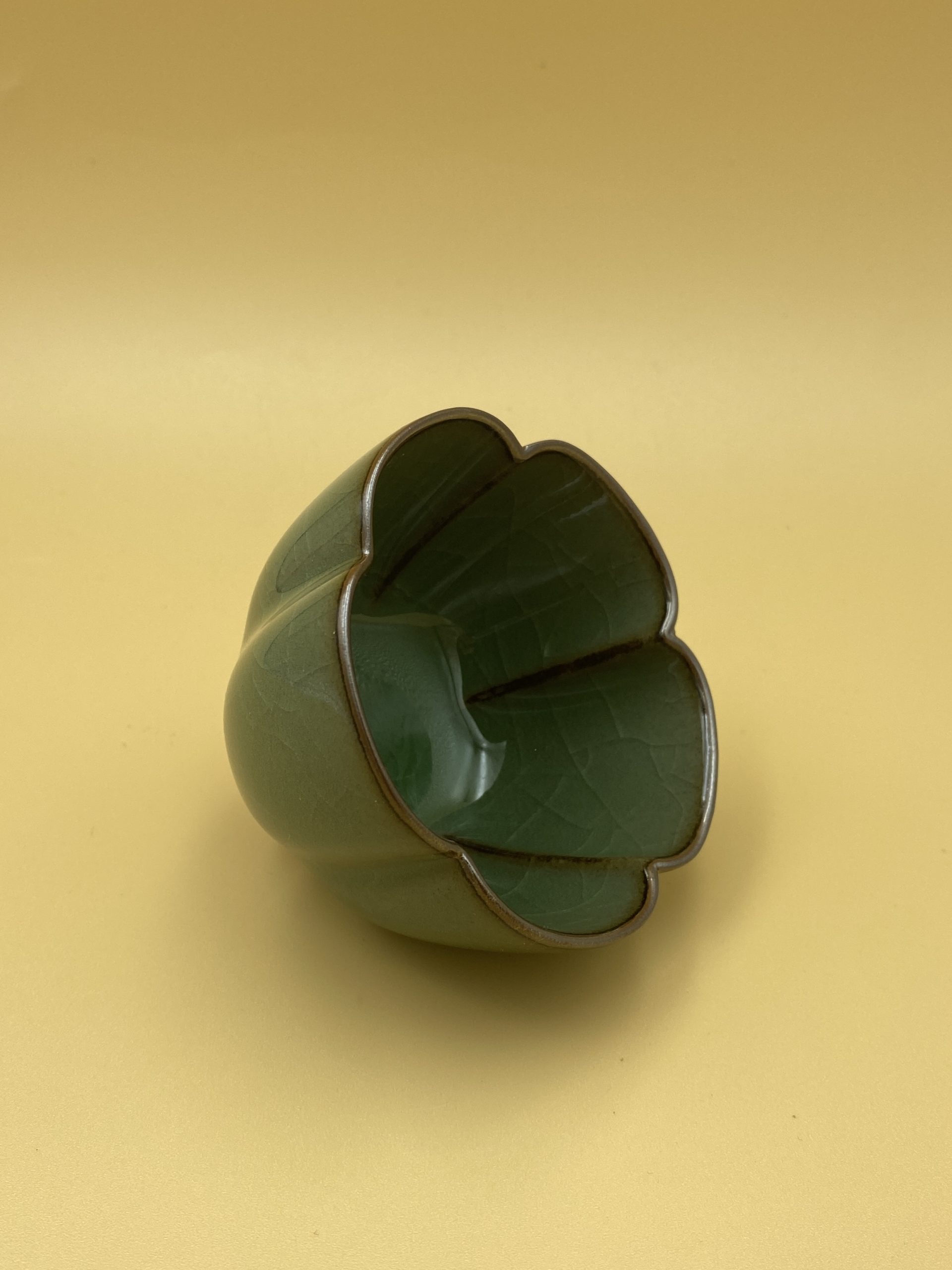 Чашка изумрудного цвета в виде цветка лотоса и с эффектом кракле.