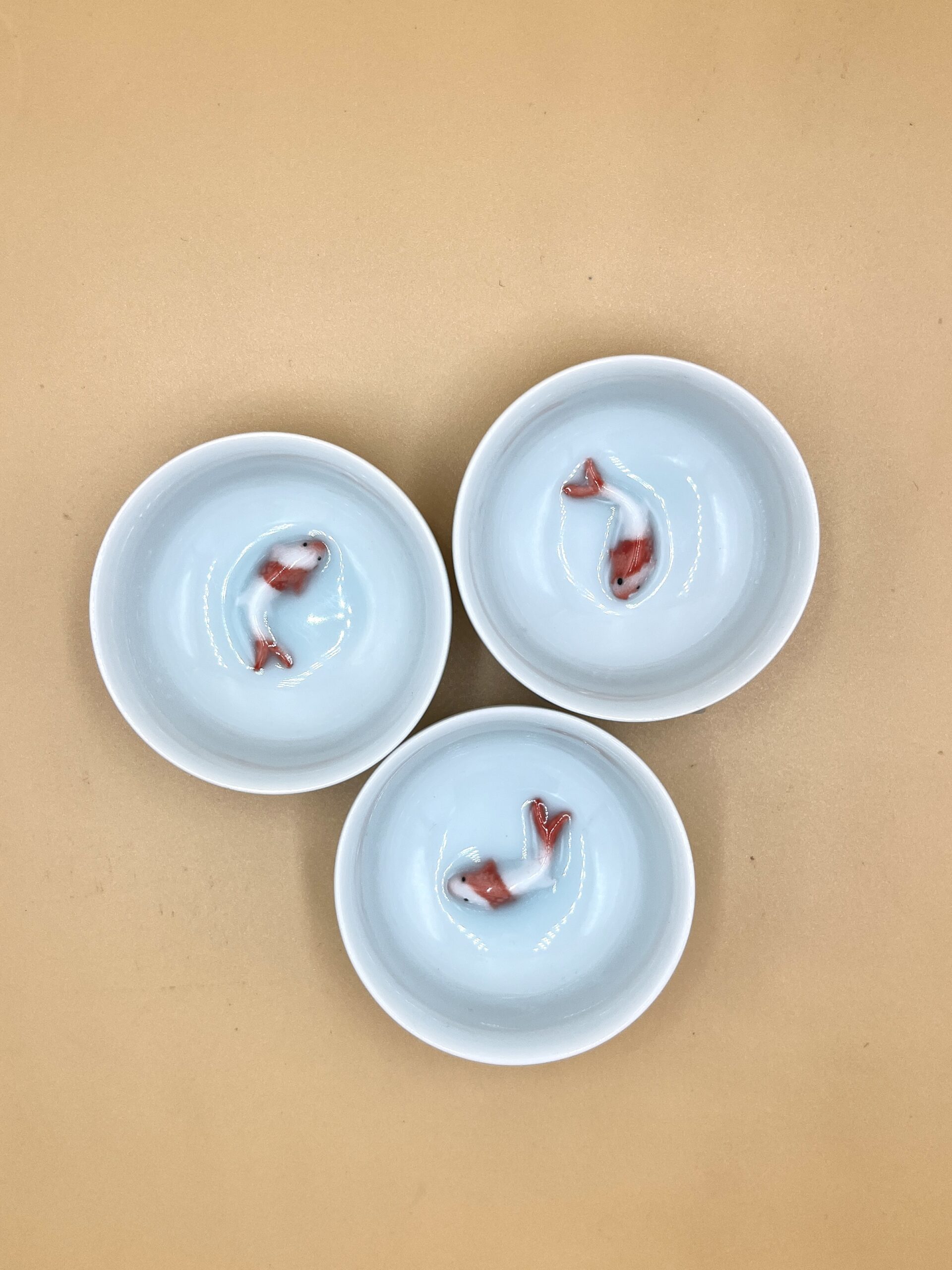 Классическая небольшая фарфоровая пиала с карпом Кои внутри.