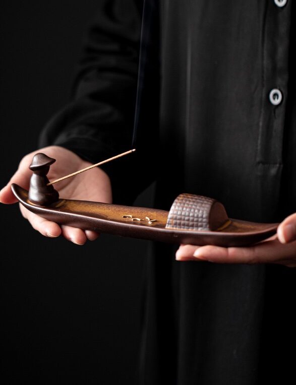 Увесистая 190 гр. керамическая подставка для благовоний-палочек. Имеет 2 отверстия – для тонких и коротких японских и китайских благовоний, и для длинных индийских на деревянной основе. Подойдёт даже для самых длинных палочек.