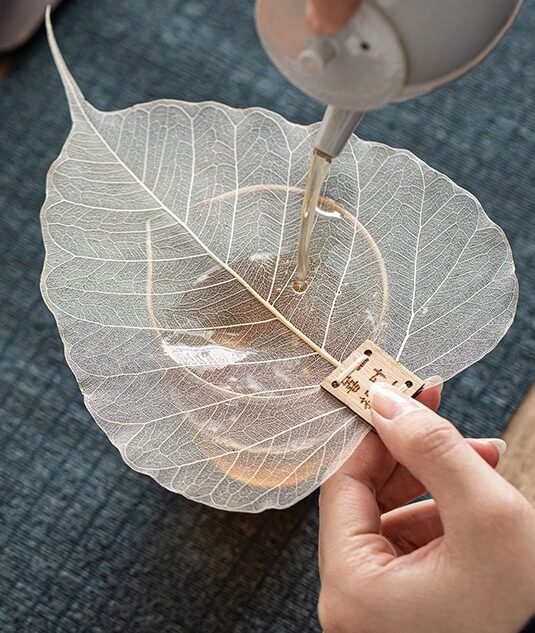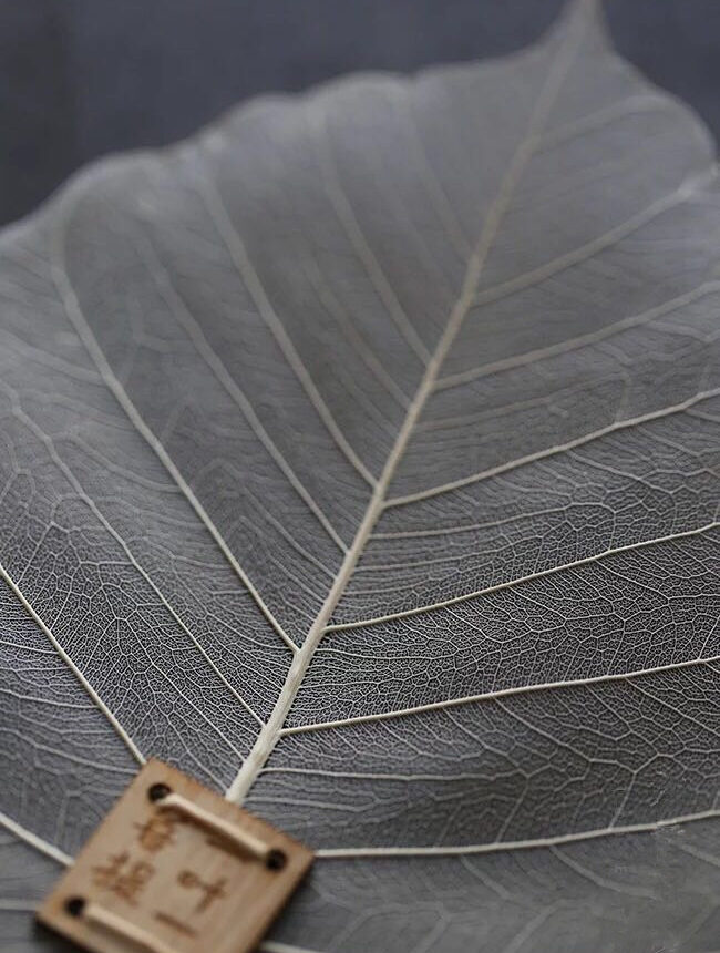 Полностью природный продукт, неповторимой формы от сита к ситу, – лист “Дерева Бодхи”, произрастающего в провинции Юньнань. Лист полностью лишен мякоти, остаются только жилки, которые не пропускают даже самую маленькую чайную пыль.