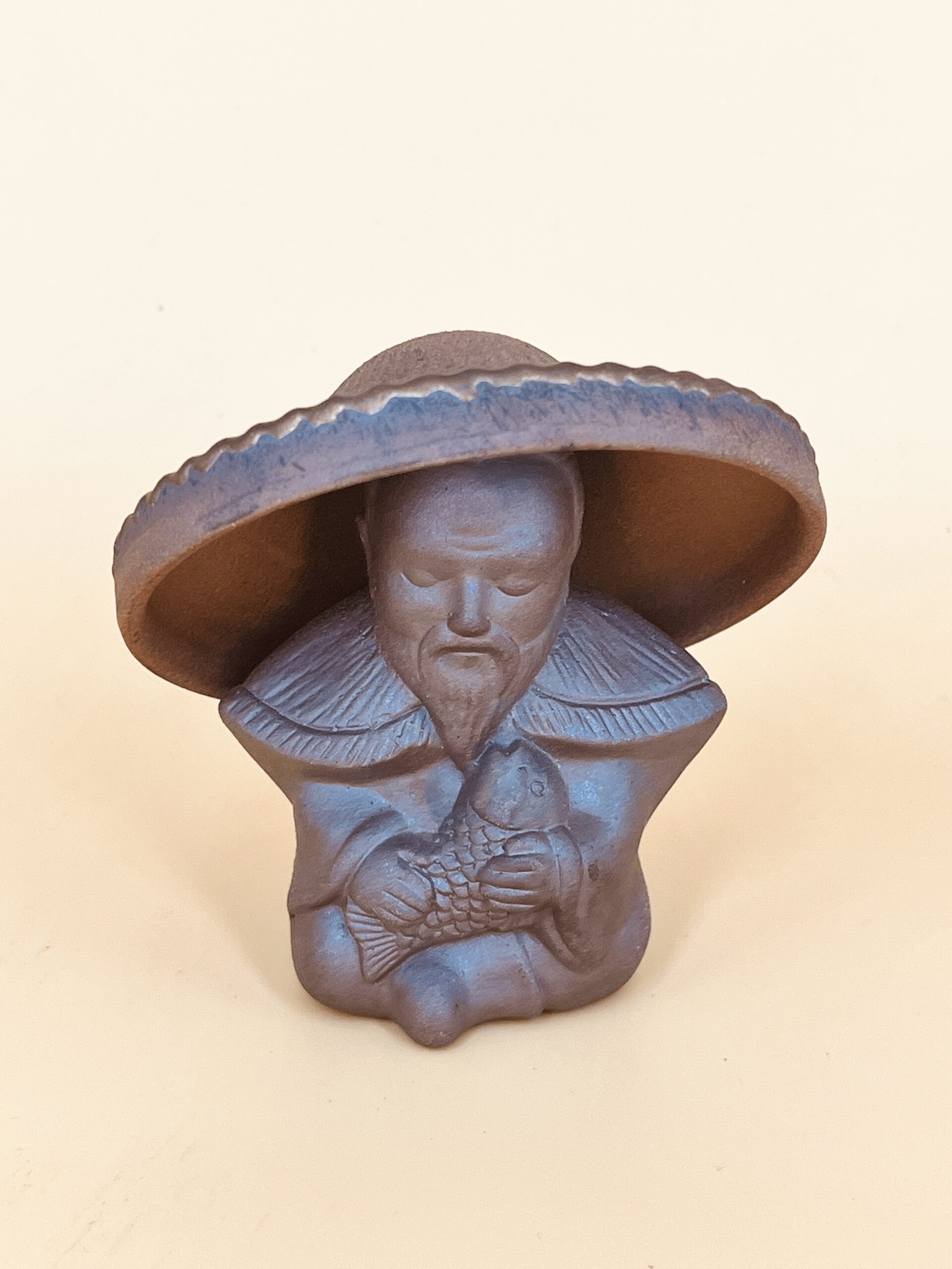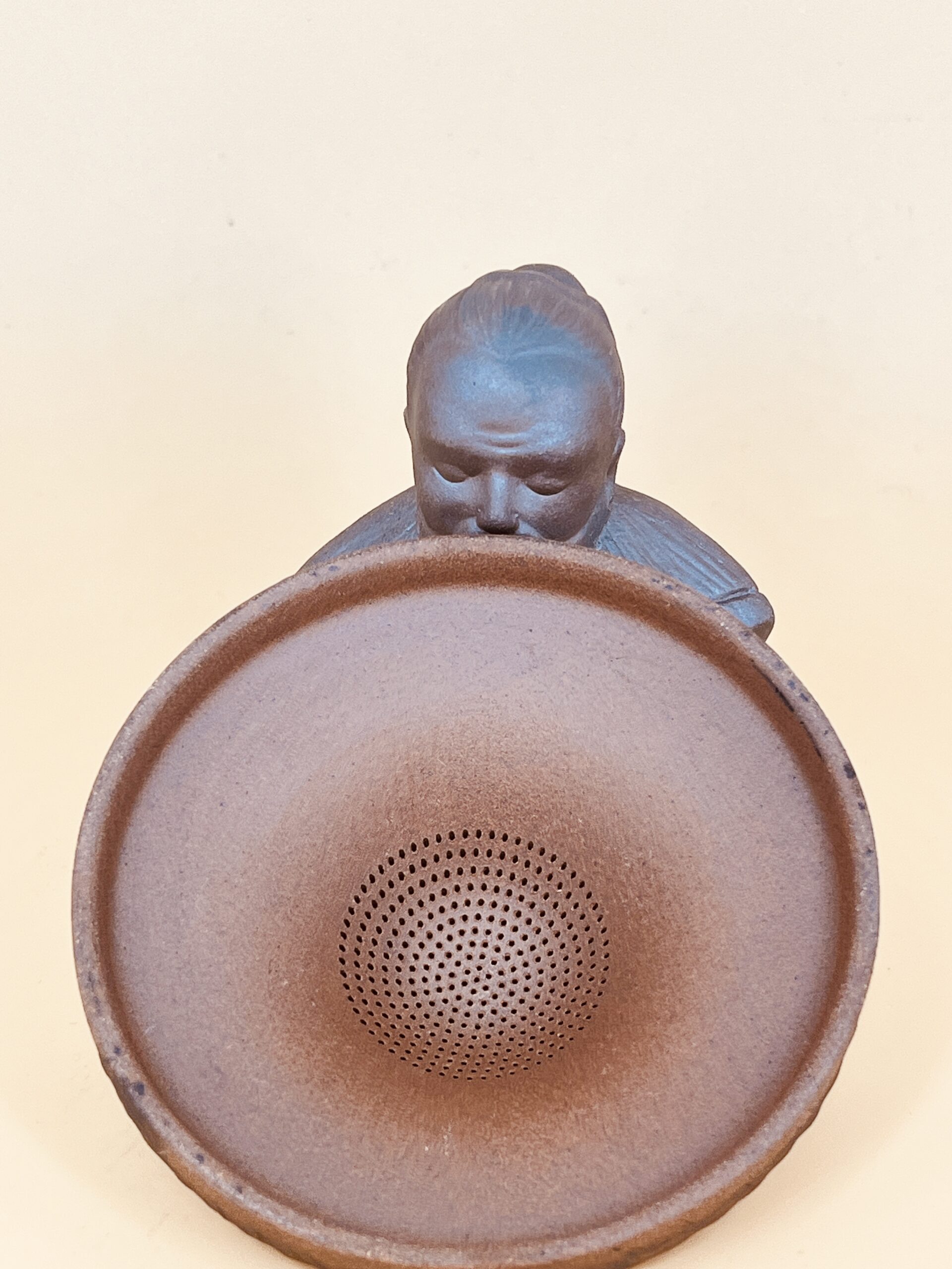 Функциональнейший предмет для чайной церемонии – чайный друг для чабани в шляпе-сито. Увесистый медитирующий рыбак всегда предоставит свою широкополую шляпу для фильтрации настоя от чаинок. Сито увесистое и мелкодисперсное, подходит для самых широких круглых сливников.