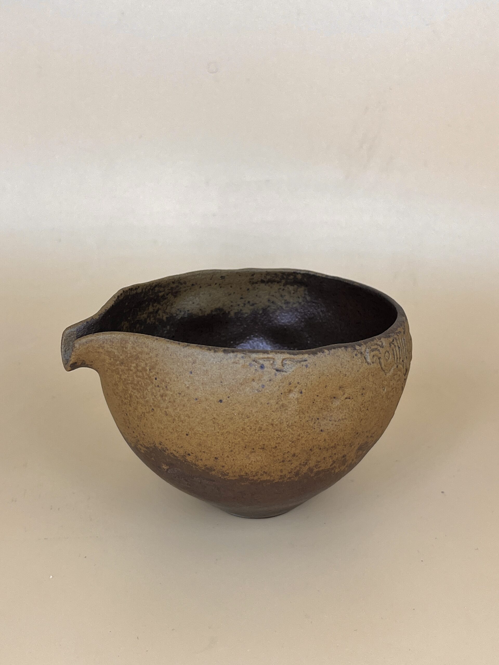 Лёгкий гладкий текстурный сливник из керамики Дэхуа, провинция Фуцзянь. Матовая охристая глина снаружи, глянцевая тёмно-коричневая шероховатая внутри.