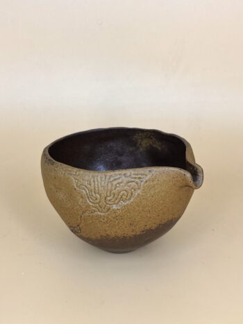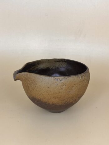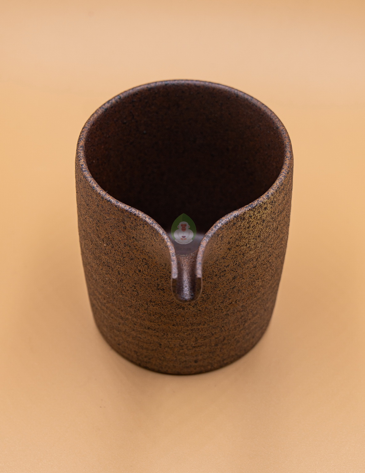 Лёгкий гладкий текстурный сливник из керамики Дэхуа, провинция Фуцзянь. Матовая охристая глина снаружи, глянцевая тёмно-коричневая шероховатая внутри.