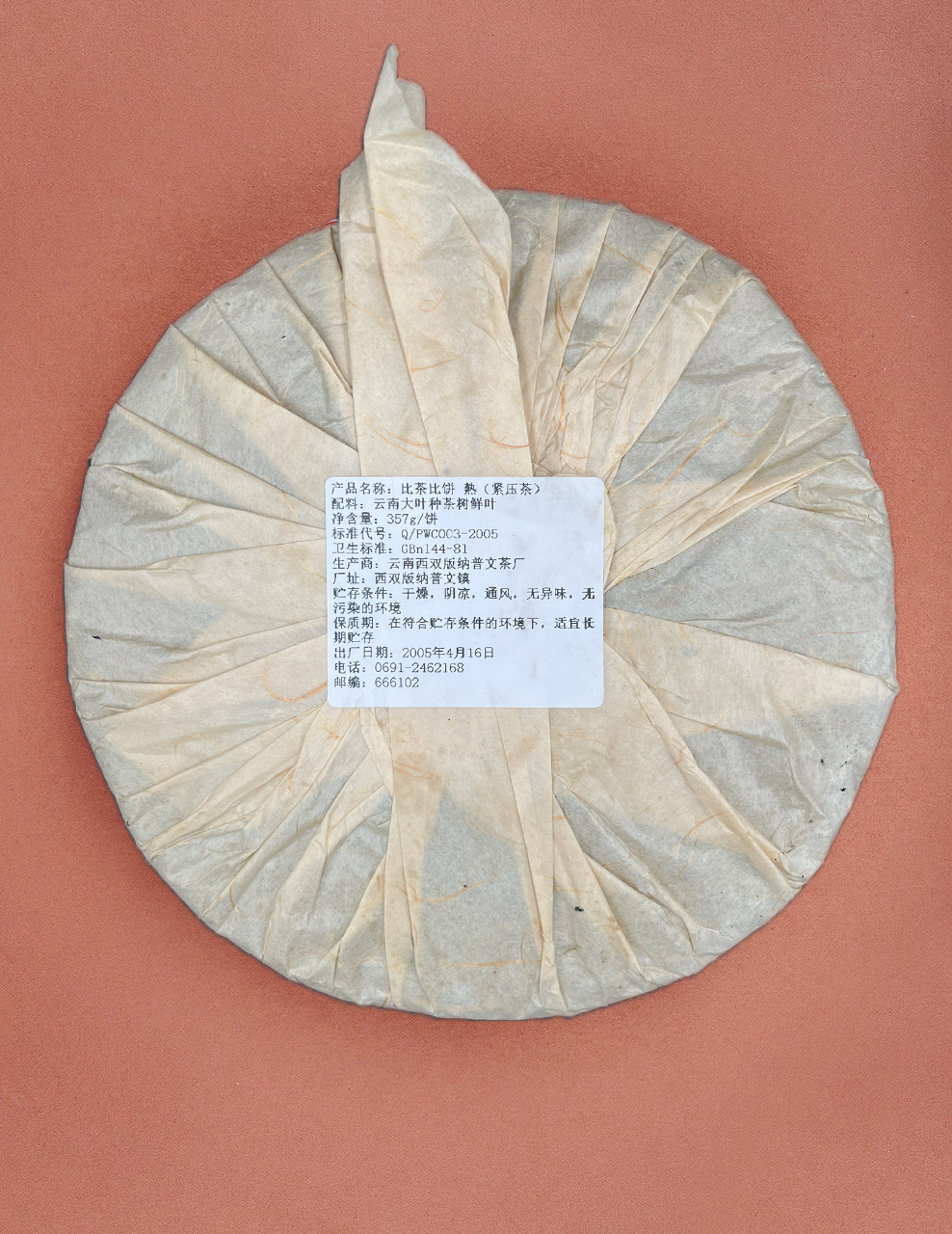 Изготавливается из весеннего чая деревьев в экологическом чайном саду чайной фабрики Пу Вэнь, Мэнхай.