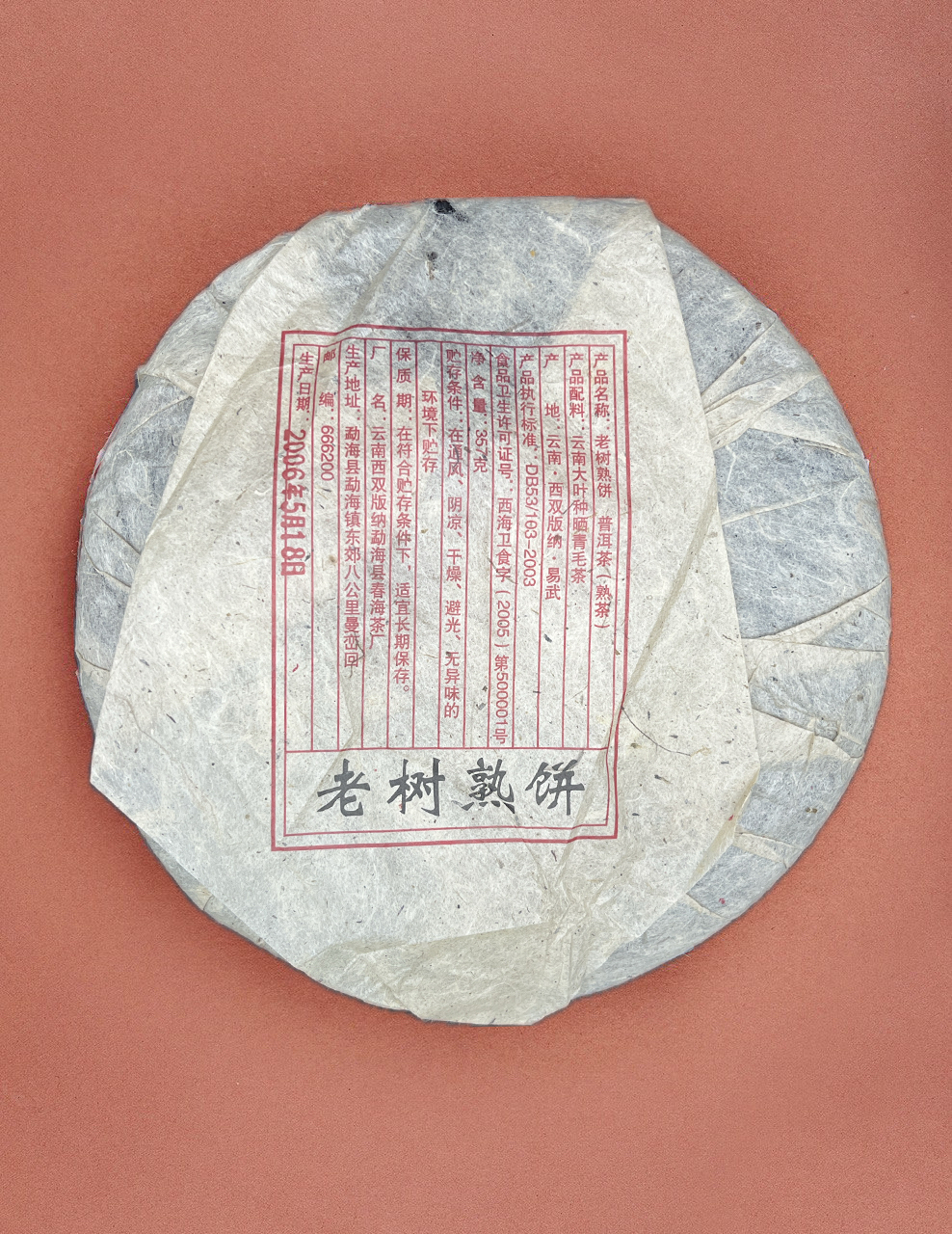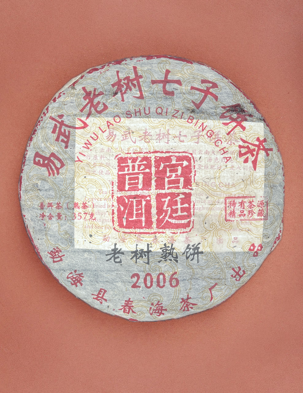 Данный блин шу пуэра представитель обширного рода Гунтин (т.н. «Дворцовый шу пуэр»). Обычным отличием гунтинов является высокое содержание чайных почек в сырье, придающих ему узнаваемый мощный вкус. Слегка сладковатый, слегка дымный вкус, дающий сливово-вишневое послевкусие.