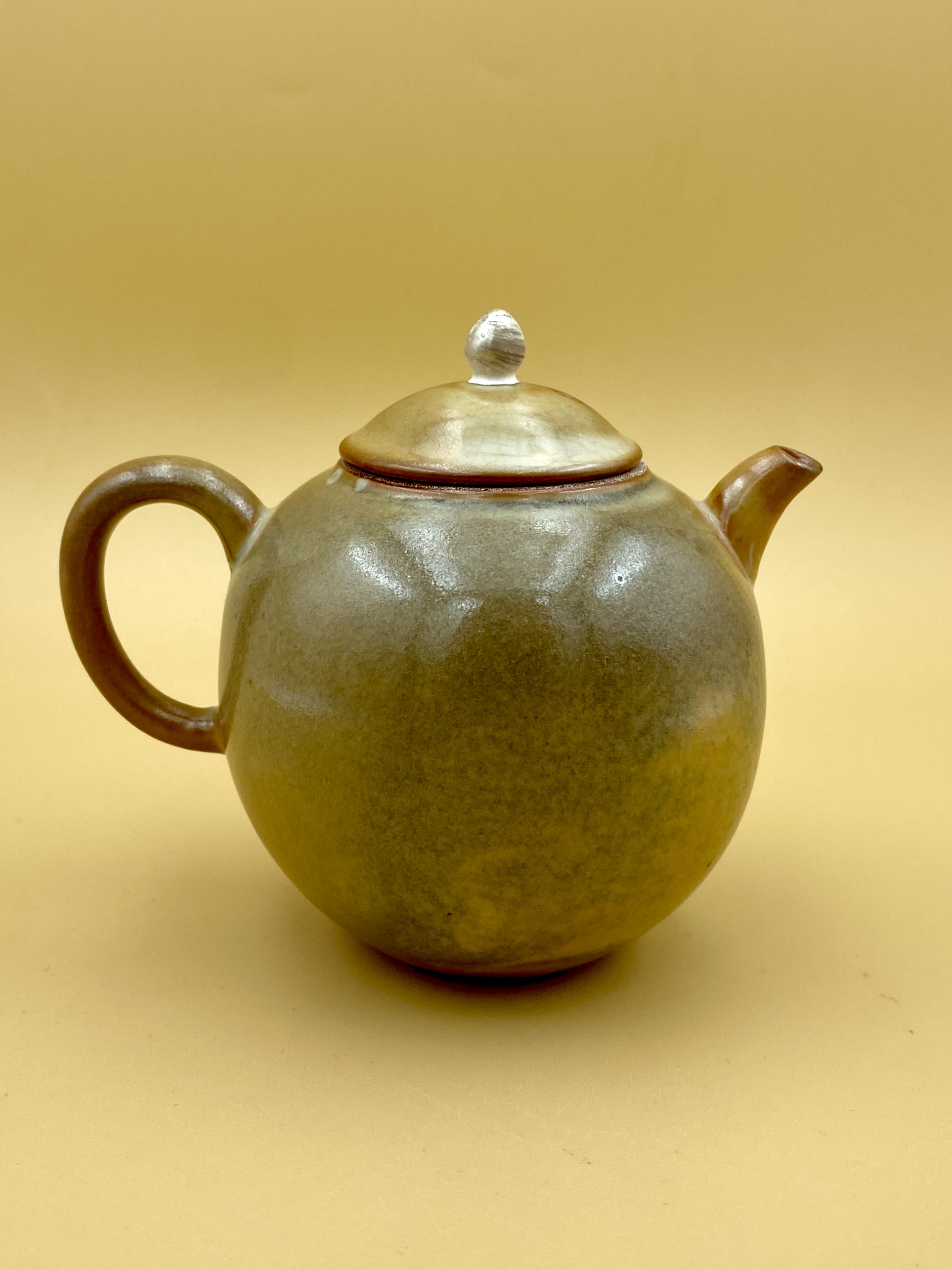 Круглый чайник неопределённой формы, яркая полу-глянцева глазурь с градиентом и мелким кракле. Отлично раскрывает аромат чая, подходит для всех типов чаёв.