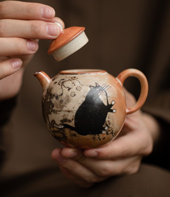 ▸ Звонкая каменная керамика Дэхуа, разный оттенок и рисунок глазури у каждого чайника.