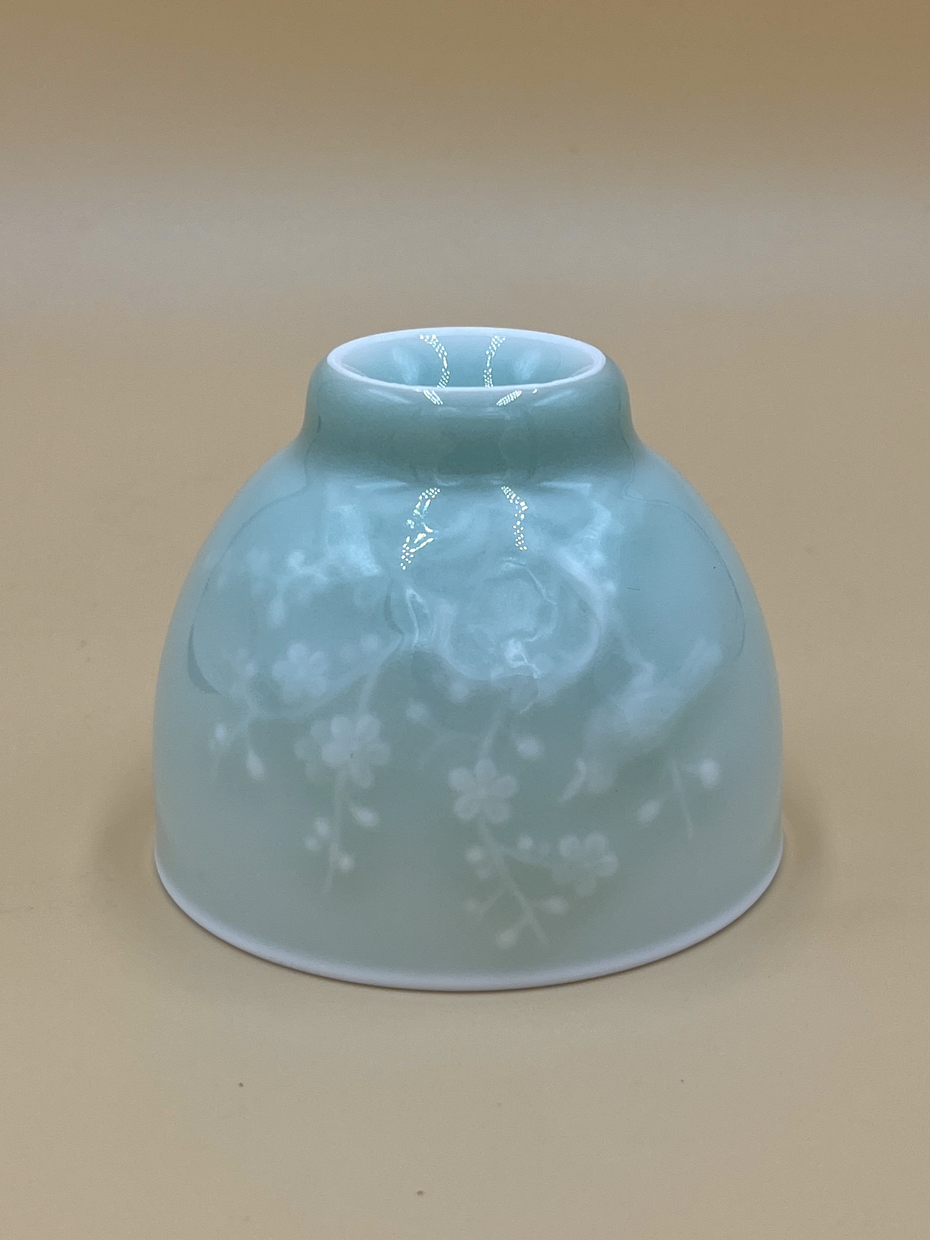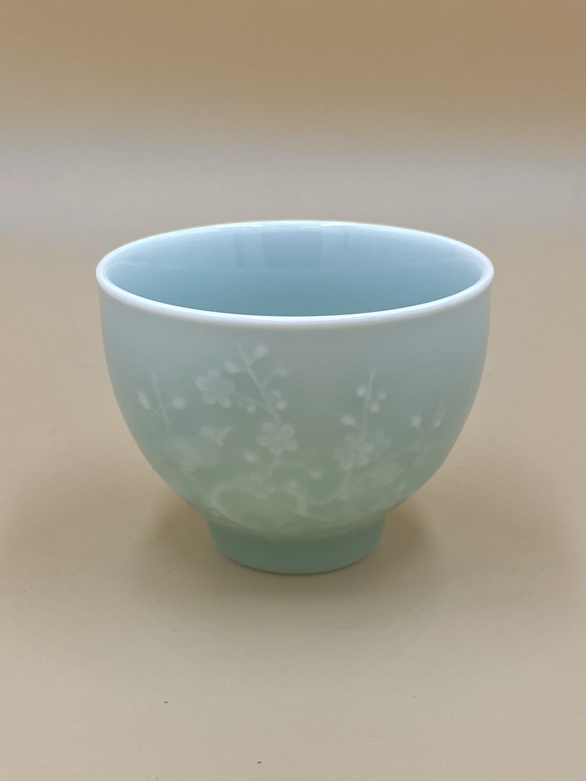 Пиала Лунцуань с цветами и птицами голубая - Магазин хорошего чая "Белая Обезьяна"