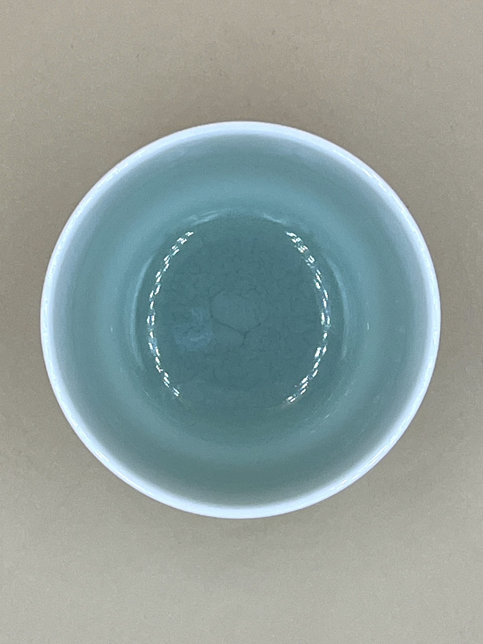 Небесно-голубая пиала со средней толщиной стенки. Вес 115 гр., объем 220 мл., рабочий объем 200 мл. Градиент от светло-голубого до изумруно-бирюзового.