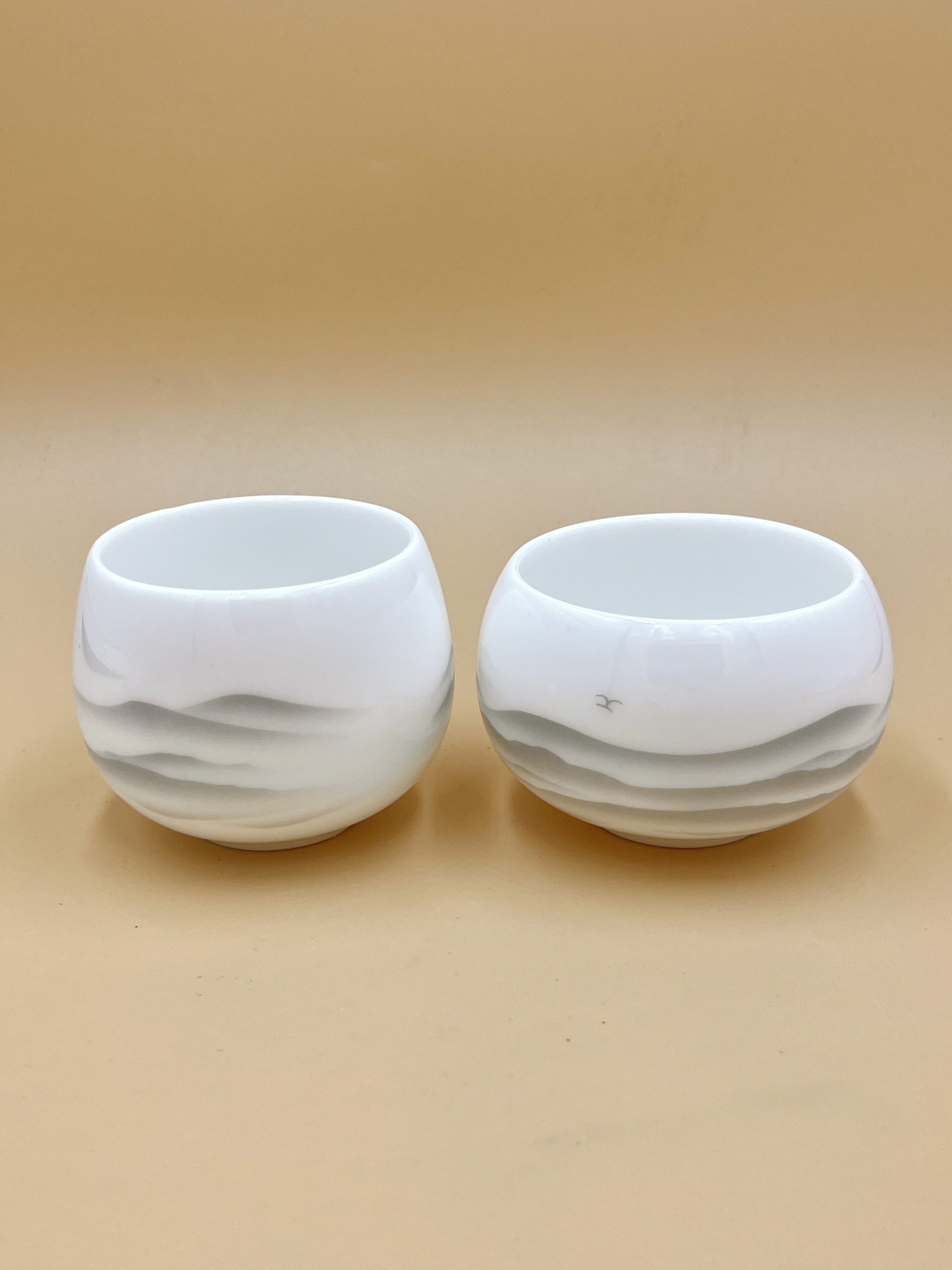 Предельный объем каждой 140 мл., рабочий объем 100-130 мл. Низкая пиала имеет чуть более толстую стенку, чем высокая.