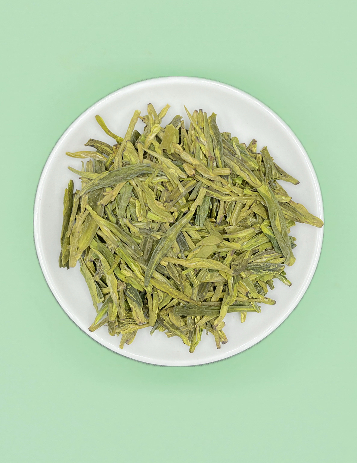 Плоский и ровный вид, длинный и гладкий, цвет листа изумрудно-зеленый и желтоватый, покрытый золотистыми ворсинками. Настой прозрачный и желтоватый, продолжительный аромат, с каштановым ароматом, мягкий и освежающий вкус. От Сиху Лунцзина его отличает более нежный, мягкий настой и сладкий вкус.