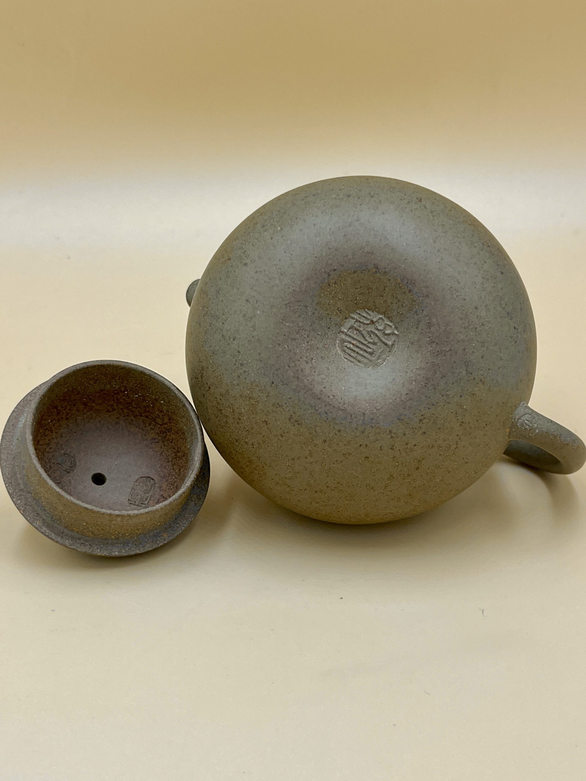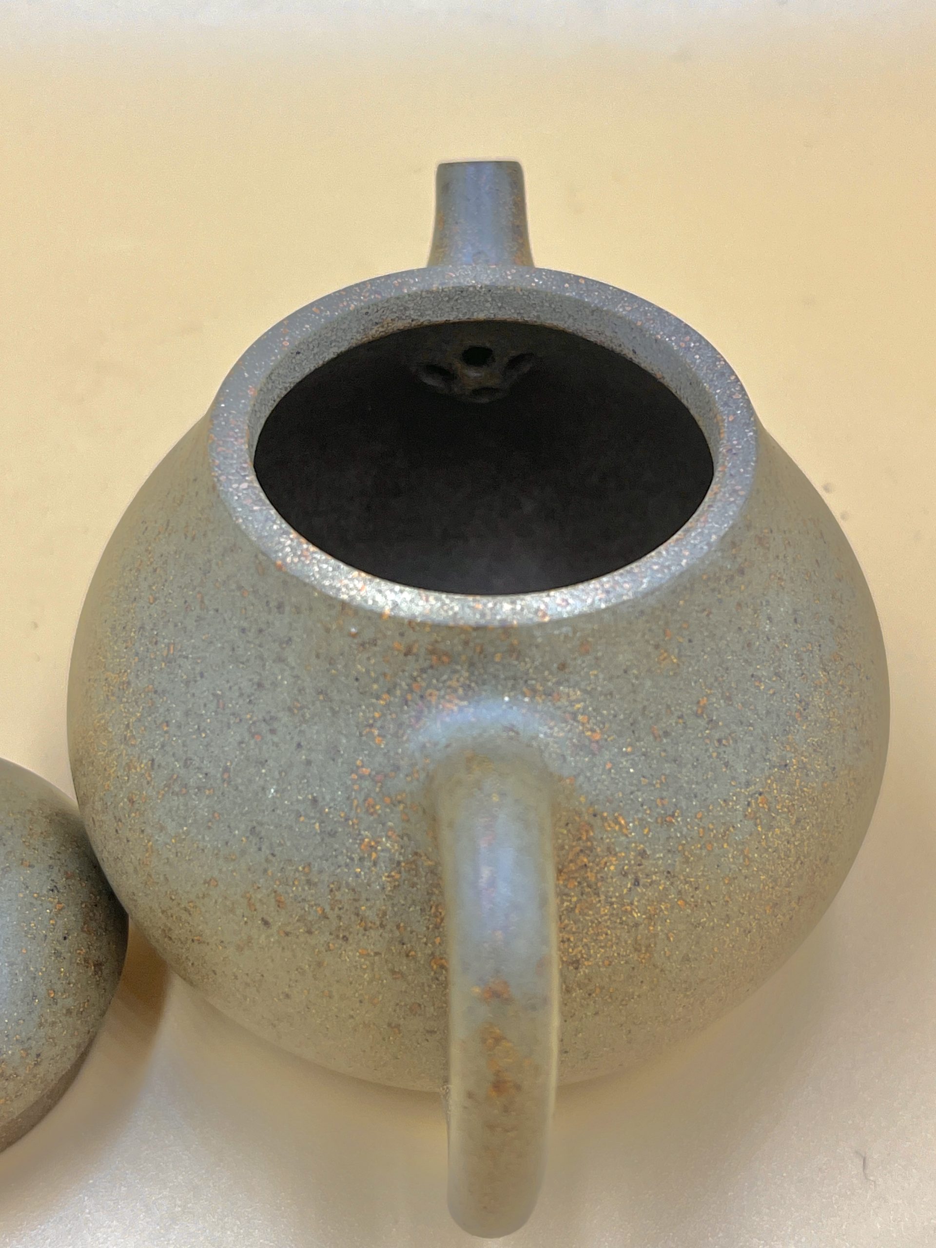 Естественный серый оттенок и золотистые вкрапления достигаются неполной очисткой глины с сохранением разного состава и фракций. Дровяной обжиг создаёт эффект естественного осаждения пепла на теле чайника, превращая его в составную часть внешнего слоя глины и создавая богатство окраса.