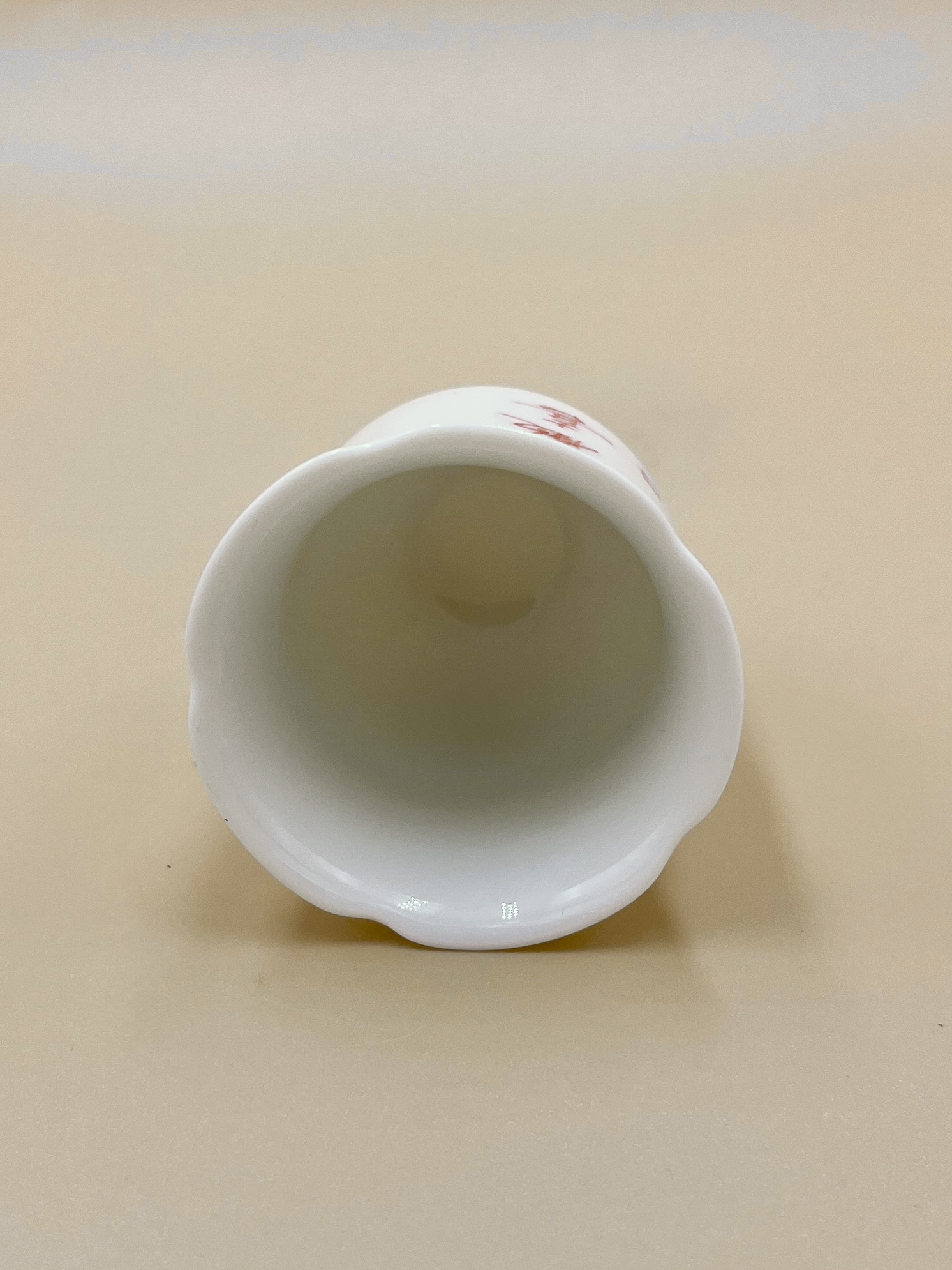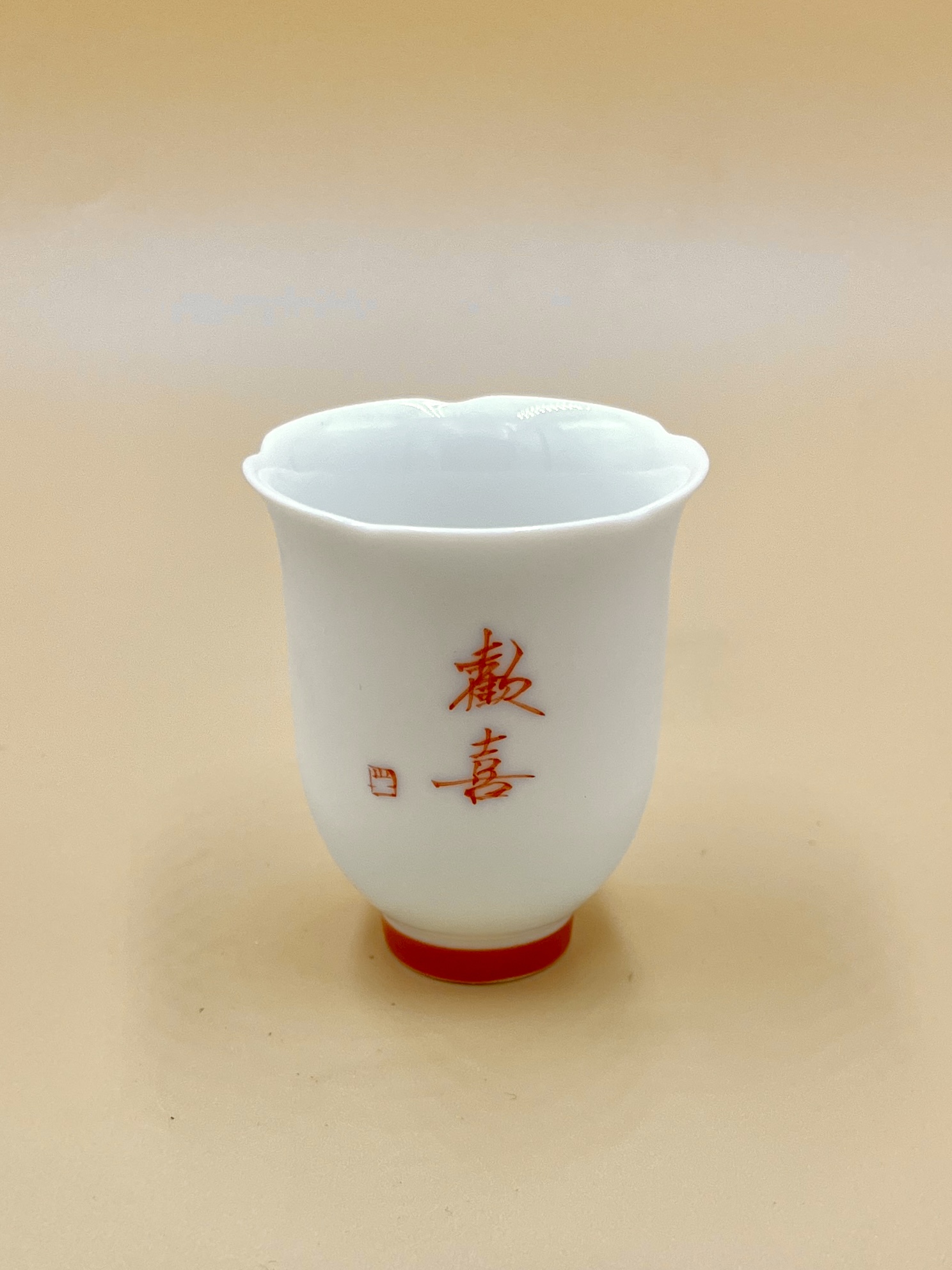 Лаконичная пиала с ярким красным акцентом. Тонкий звонкий фарфор, надпись на пиале 散喜 – “распространяйте радость”.
