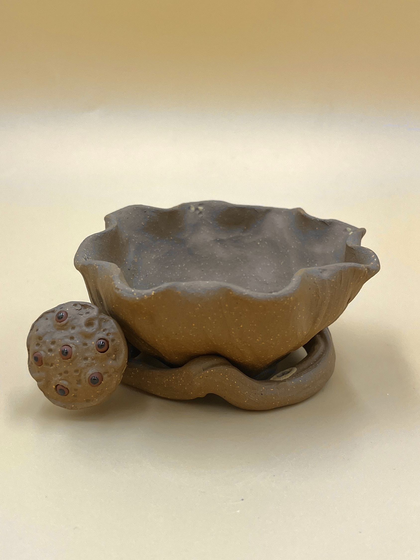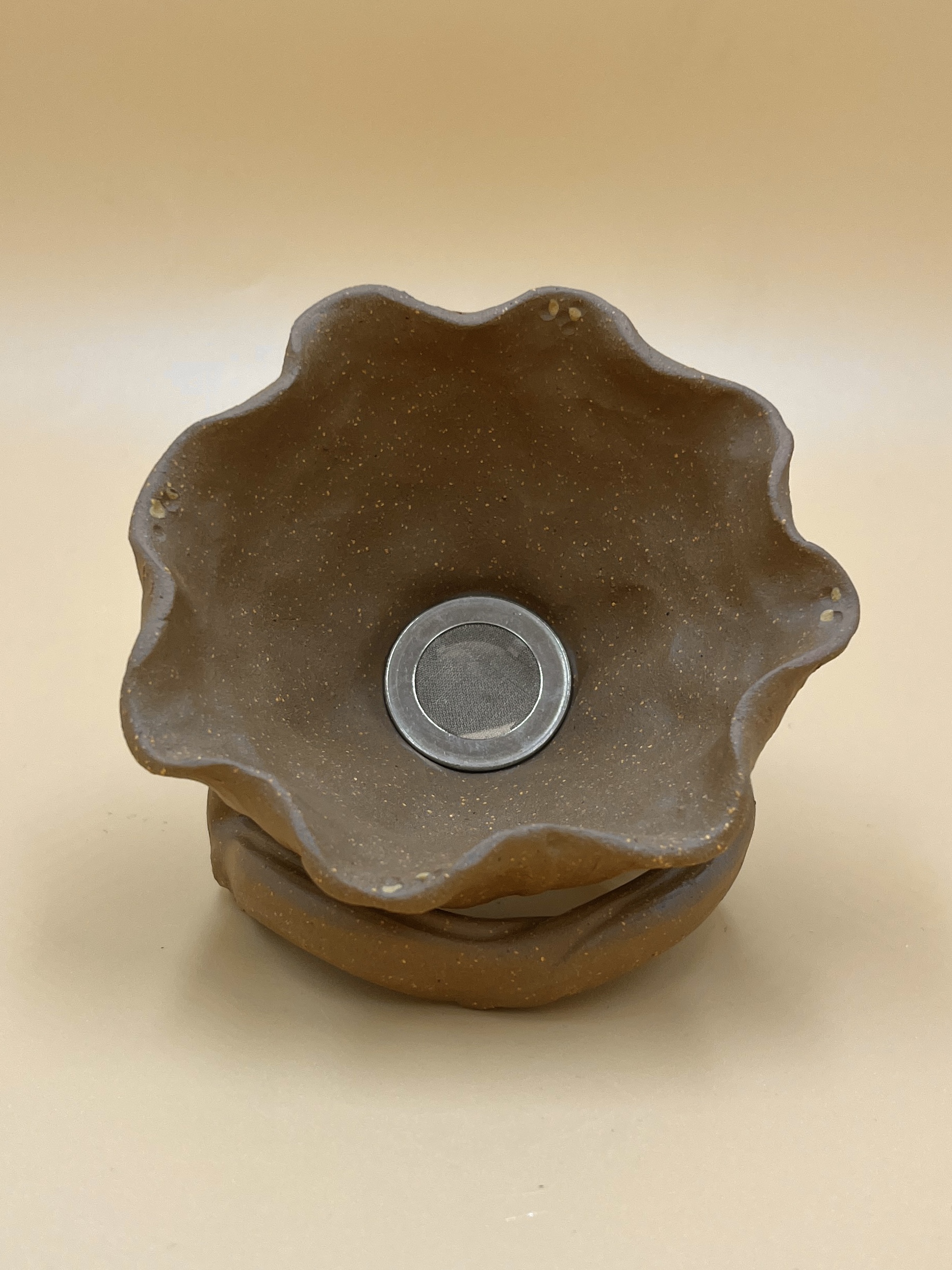 Сито ручной лепки из исинской необработанной глины Цзянь По Ни 降坡泥 – “упавшая со склона глина”. Среднетемпературный обжиг, природная песчаная крупнодисперсная текстура.