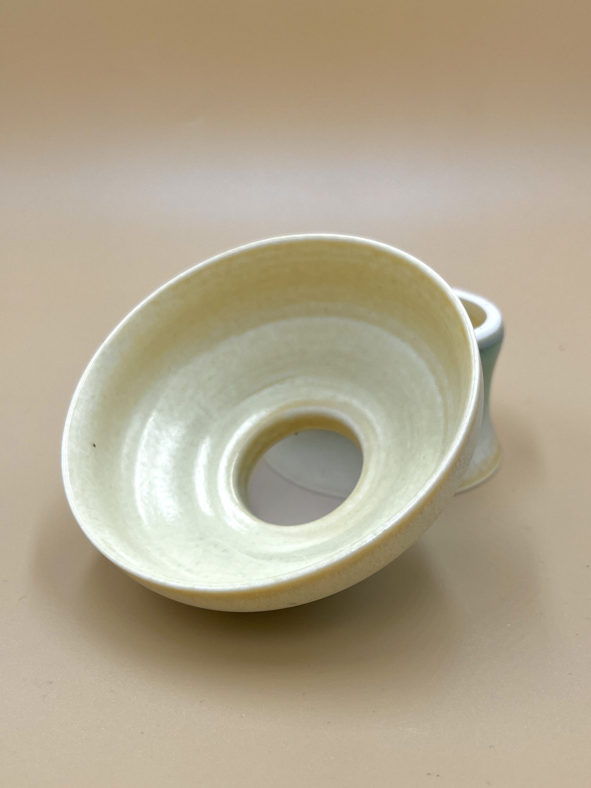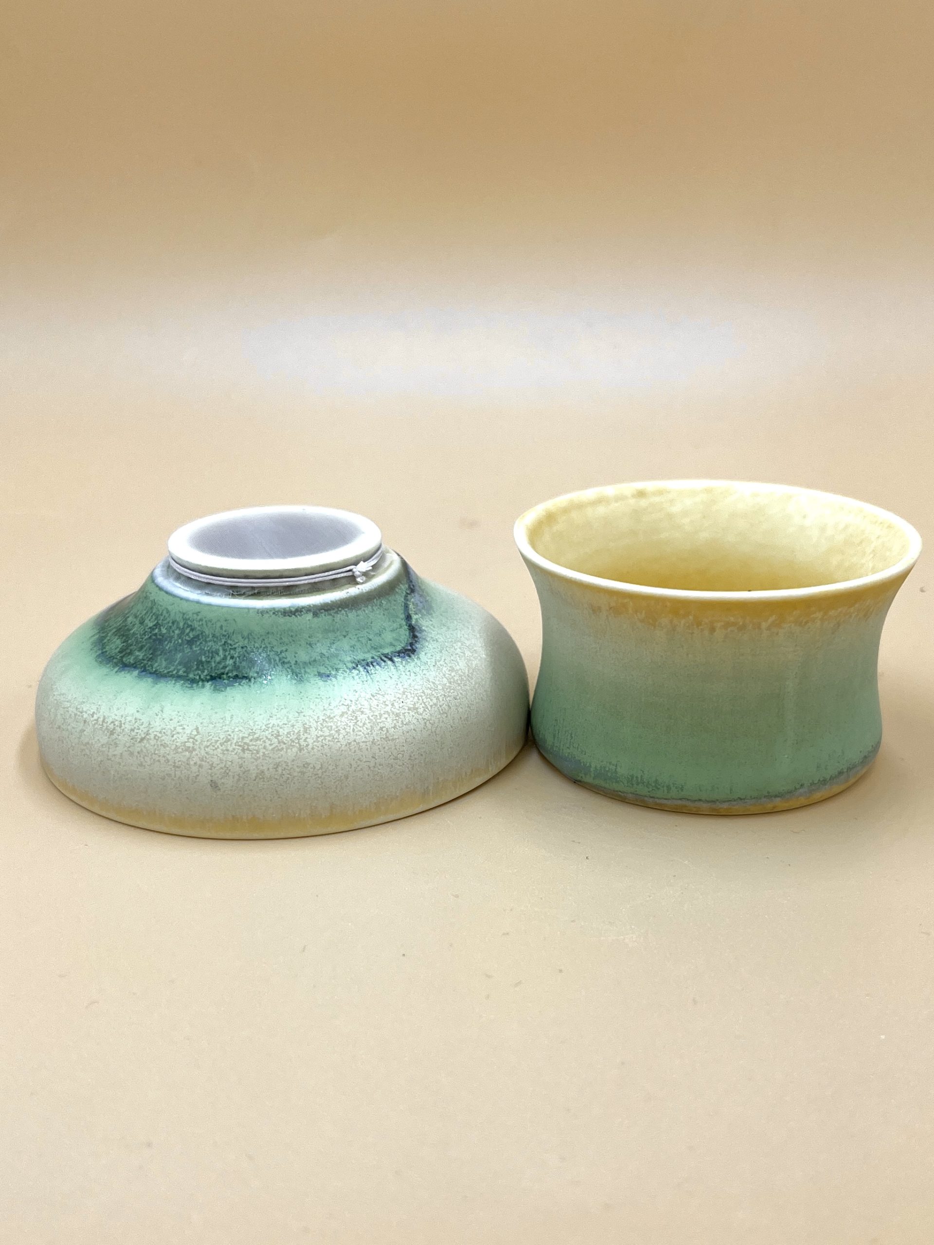 Красивое чайное сито с градиентом, напоминающим море и песок, приливы волн к берегу. Тактильно шершавая, мелко-песчаная текстура глазури.