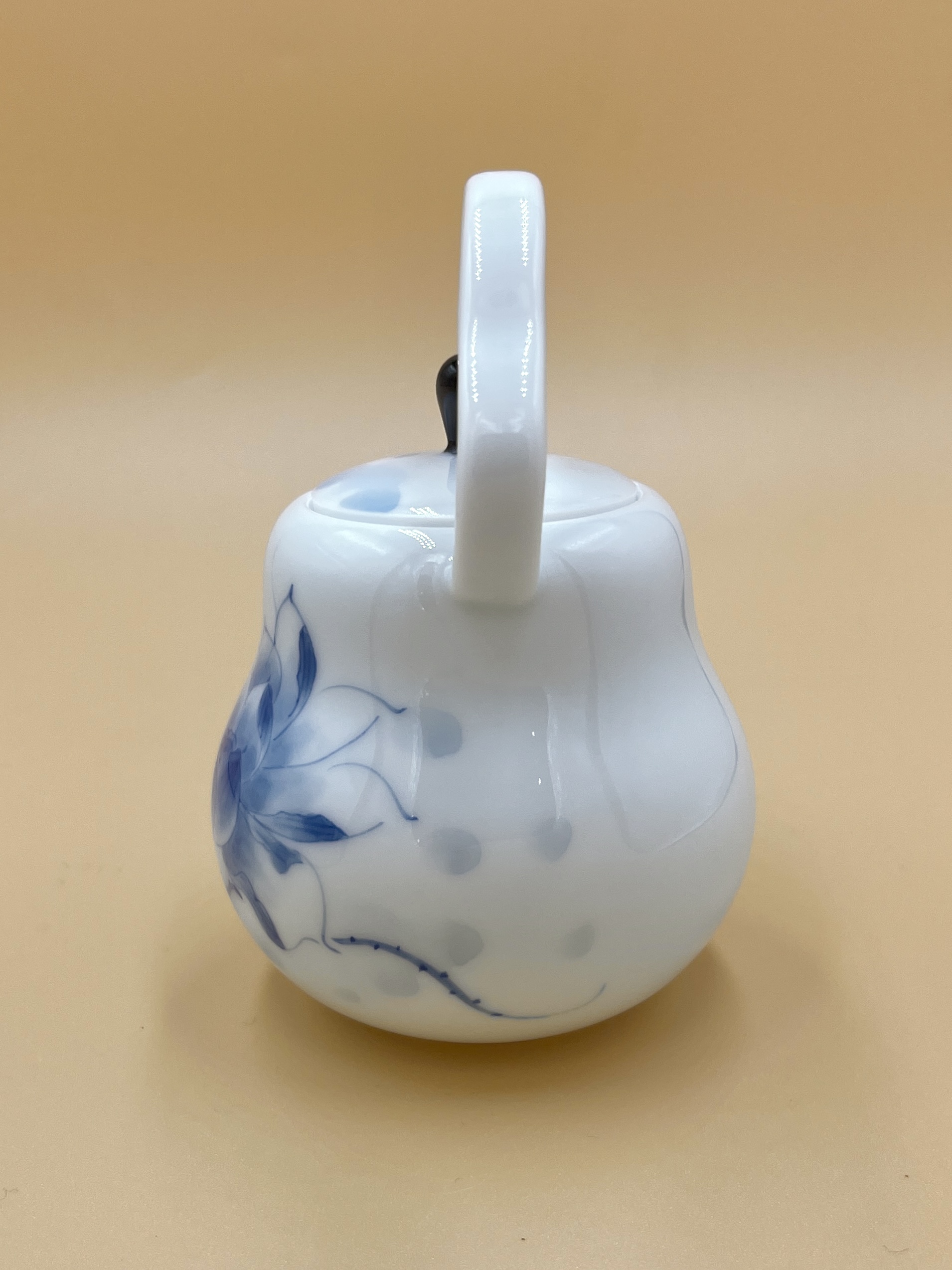 Чайник Тилян Ху с синим лотосом фарф. Дэхуа 140 мл. (Чайник с ручкой Ляна)