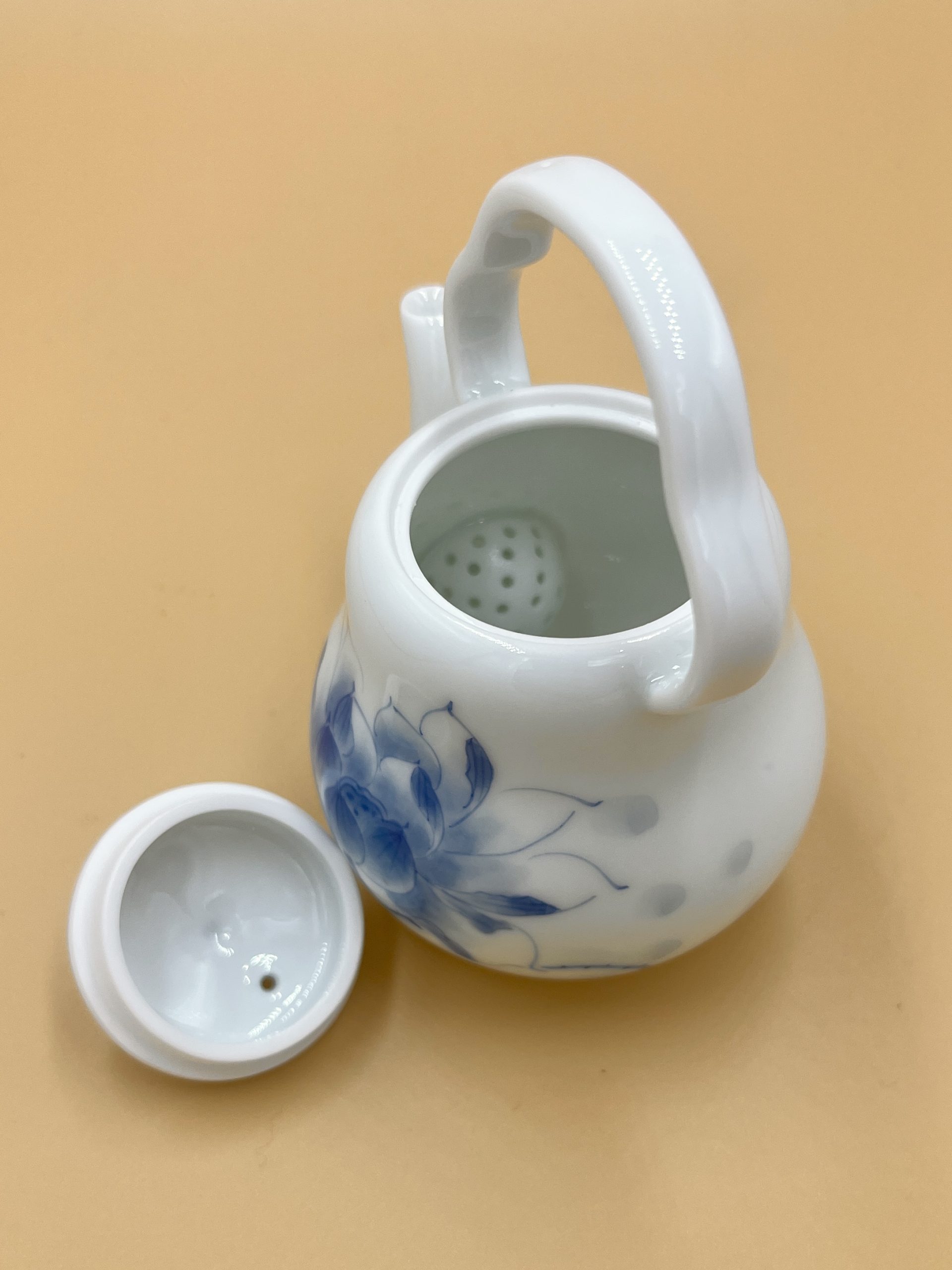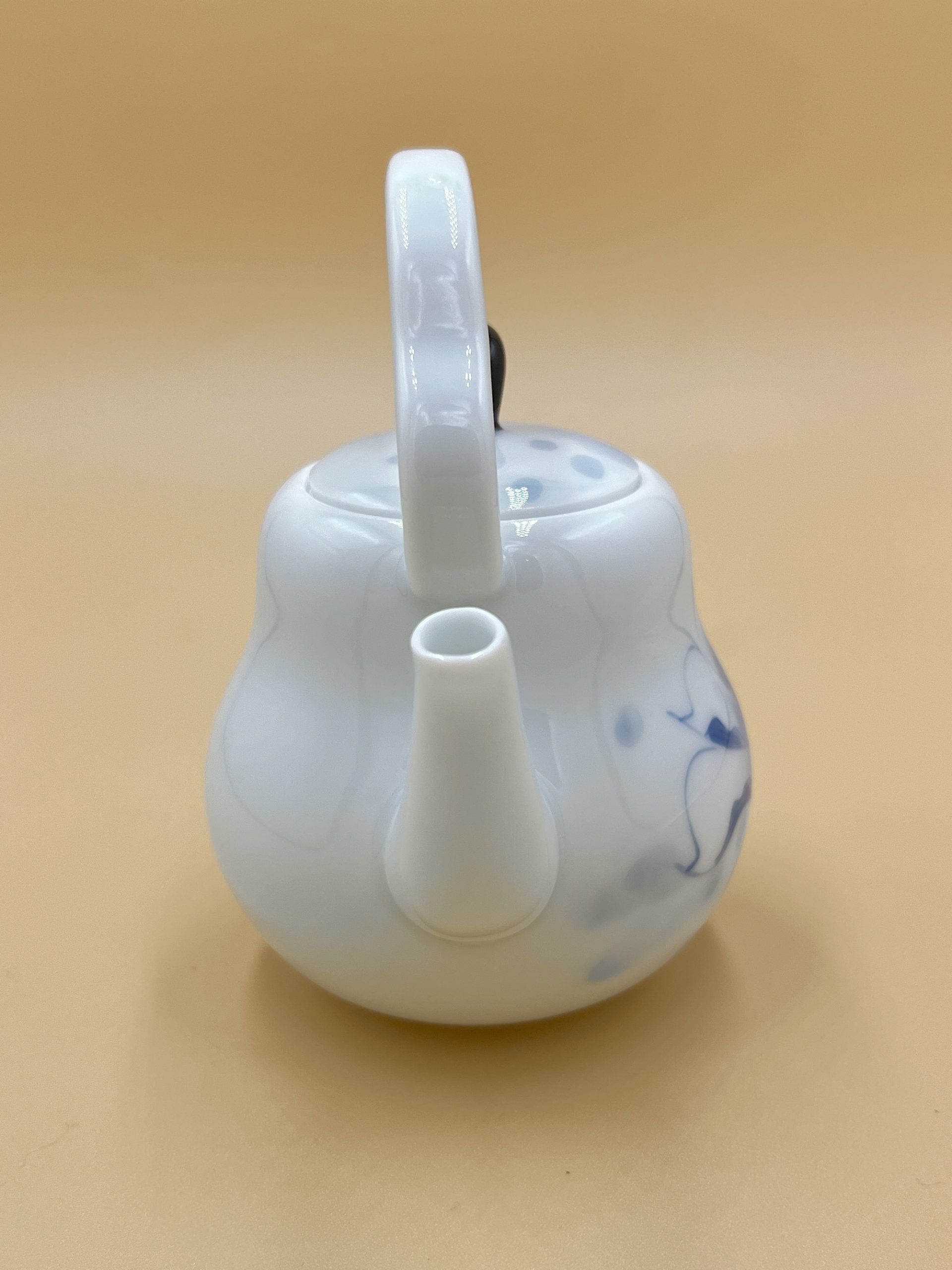 Чайник Тилян Ху с синим лотосом фарф. Дэхуа 140 мл. (Чайник с ручкой Ляна) - Магазин хорошего чая "Белая Обезьяна"