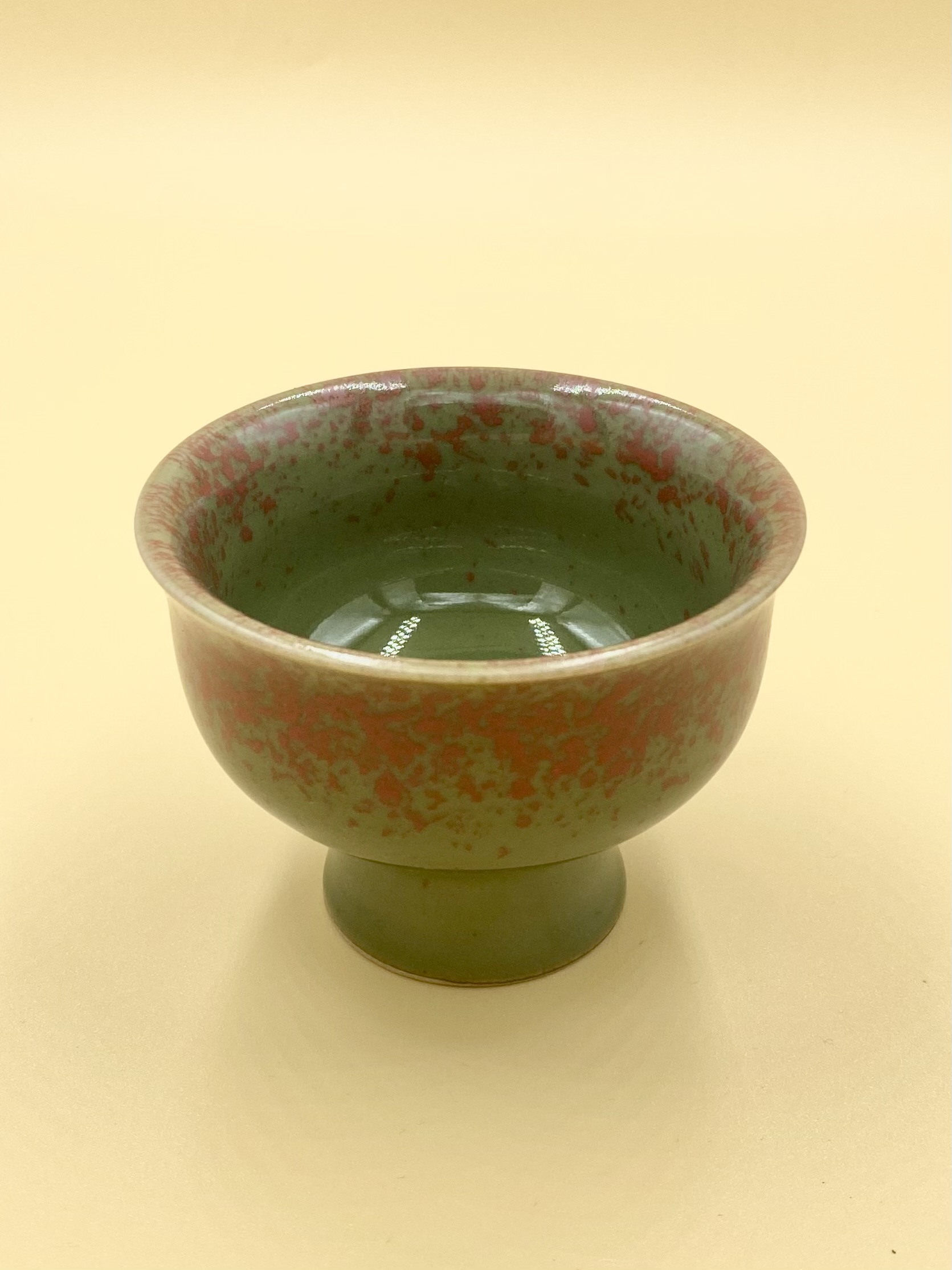 Лёгкая тонкая пиала из звонкого светло-розового фарфора. Рабочий объём 50 мл, вес 60 гр. Хорошо передаёт аромат в пустой пиале, удобна в использовании с чайными щипцами.
