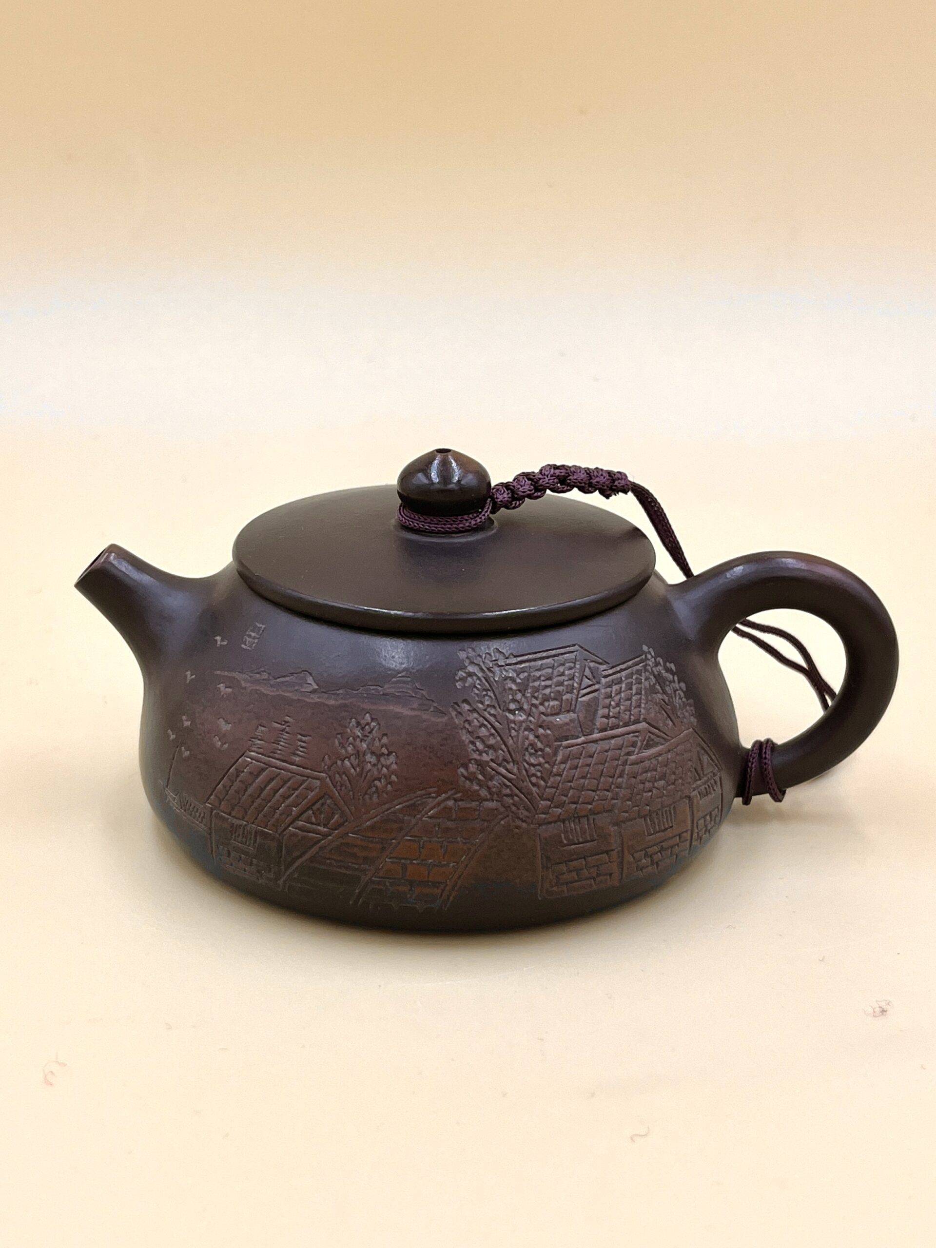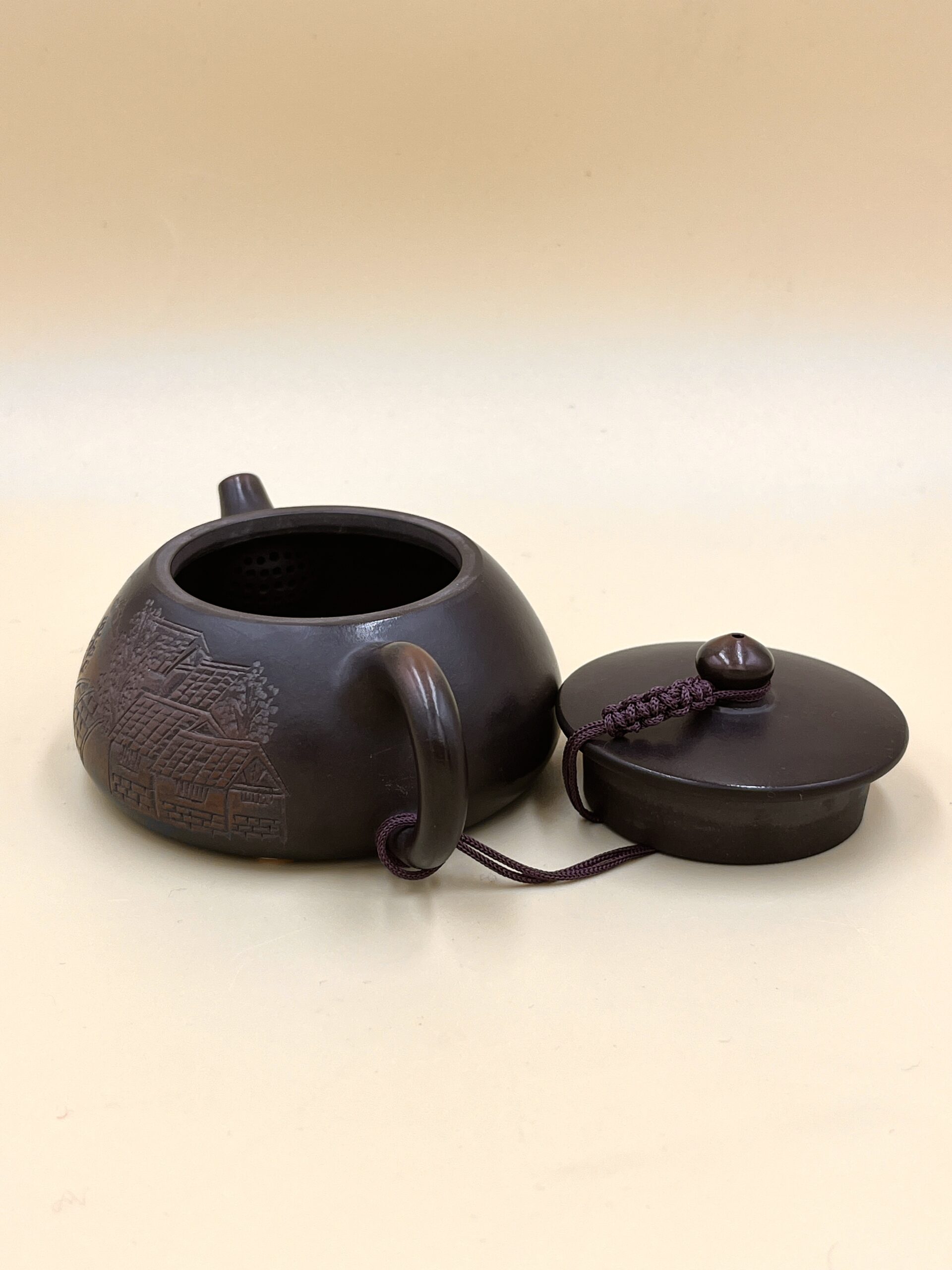 Благодаря обжигу и полировке чайник обретает уникальный характерный рисунок Нисин: пятна и градиенты разных оттенков.