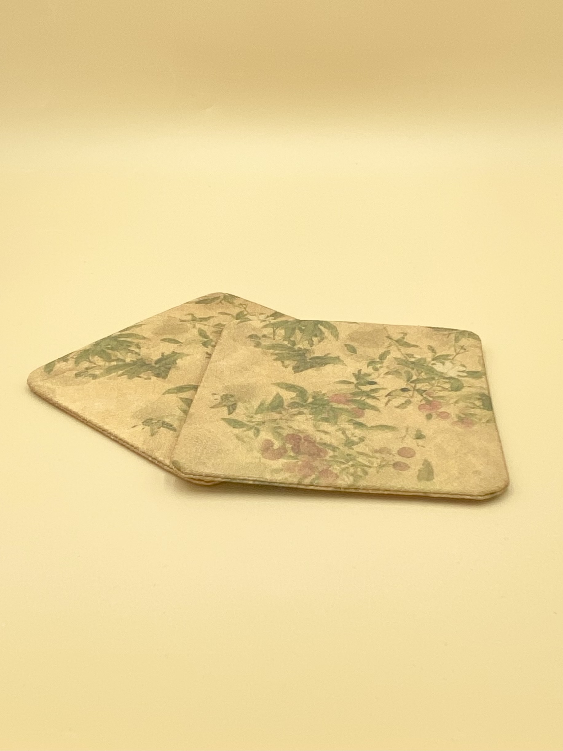 Классическая тканевая подкладка под пиалу с изображением ветви дерева личи. Сделана из двух слоев плотной ткани, отлично впитывает влагу, приятная визуально и на ощупь.