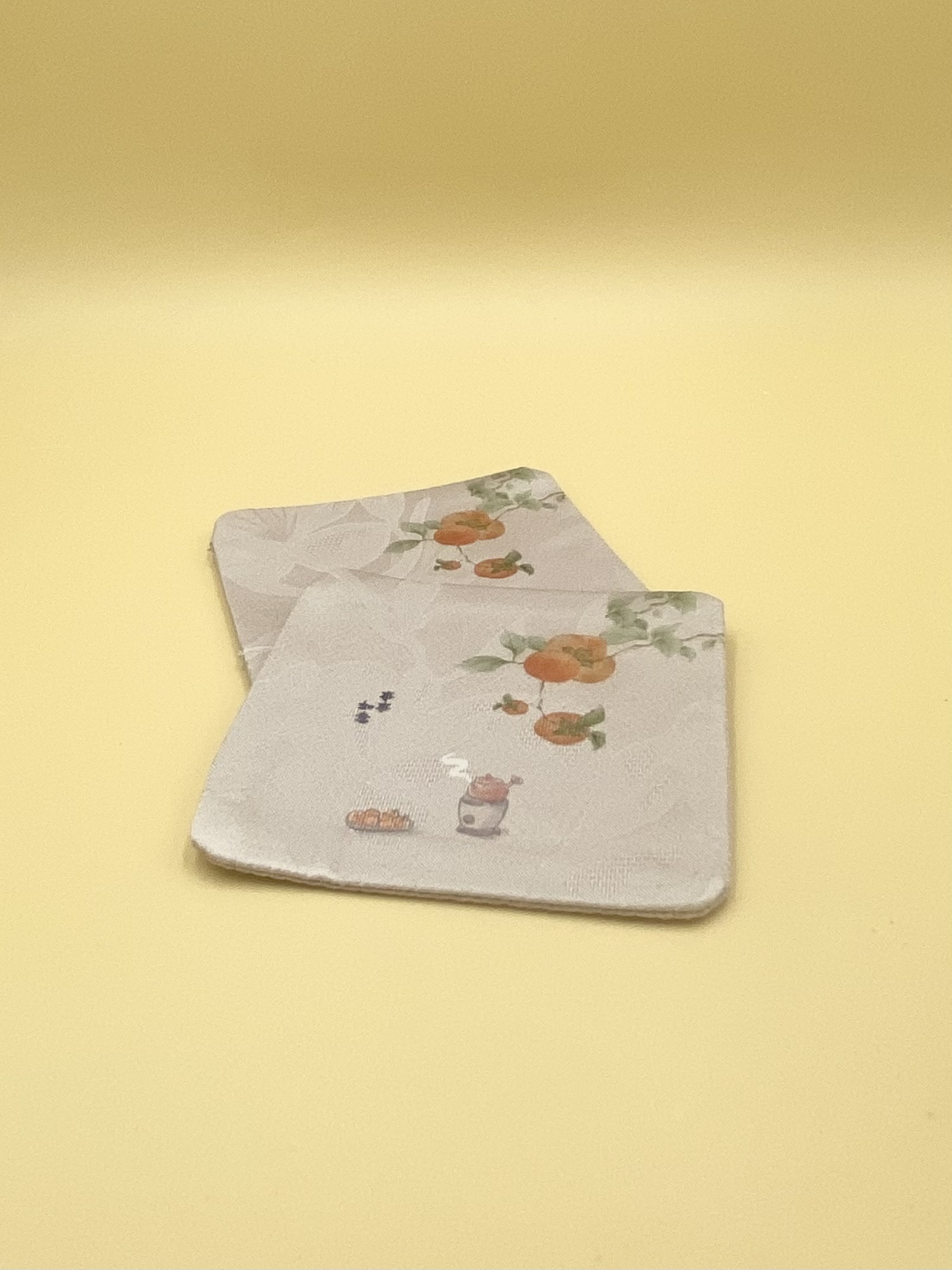 Классическая тканевая подкладка под пиалу с изображением ветви хурмы. Сделана из двух слоев плотной ткани, отлично впитывает влагу, приятная визуально и на ощупь.