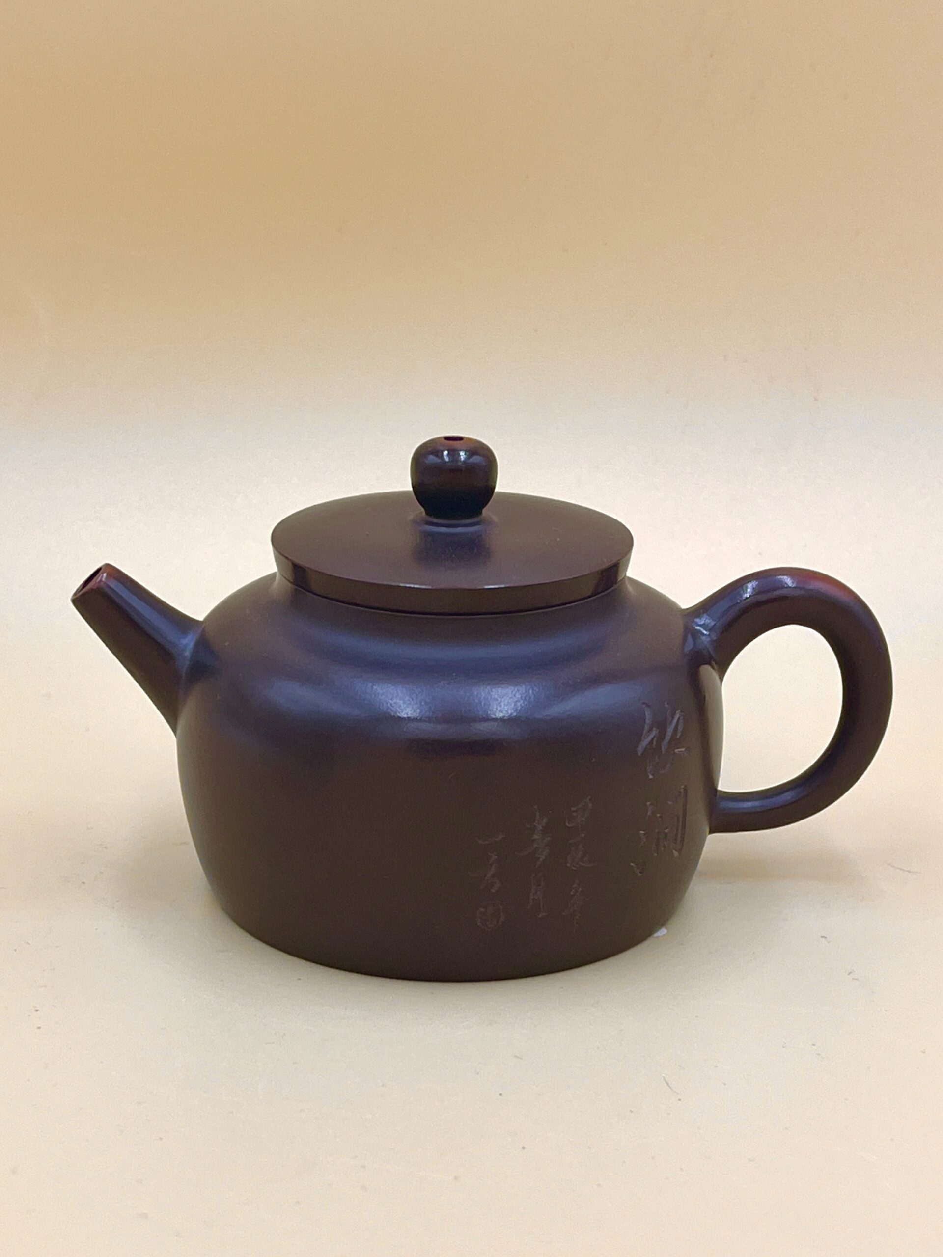 Классический по окрасу чайник керамики Нисин из Цзиньчжоу, провинция Гуанси. На Боку иероглиф Дзен 禅 и отрывок из Сутры Сердца.