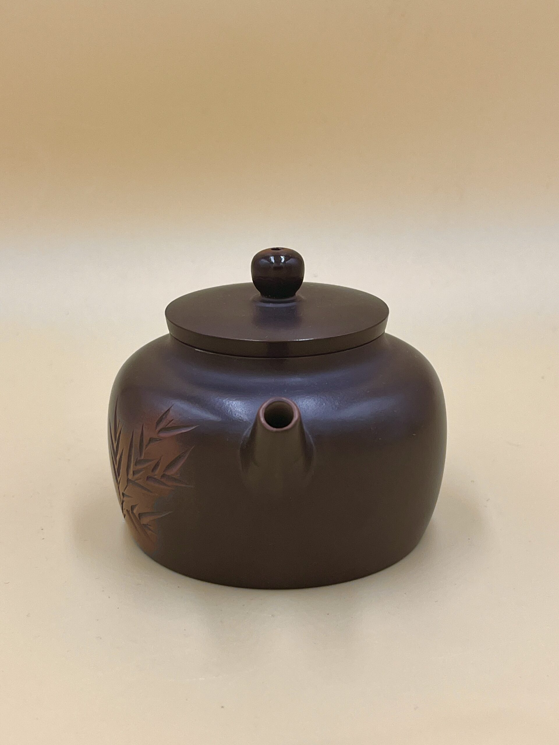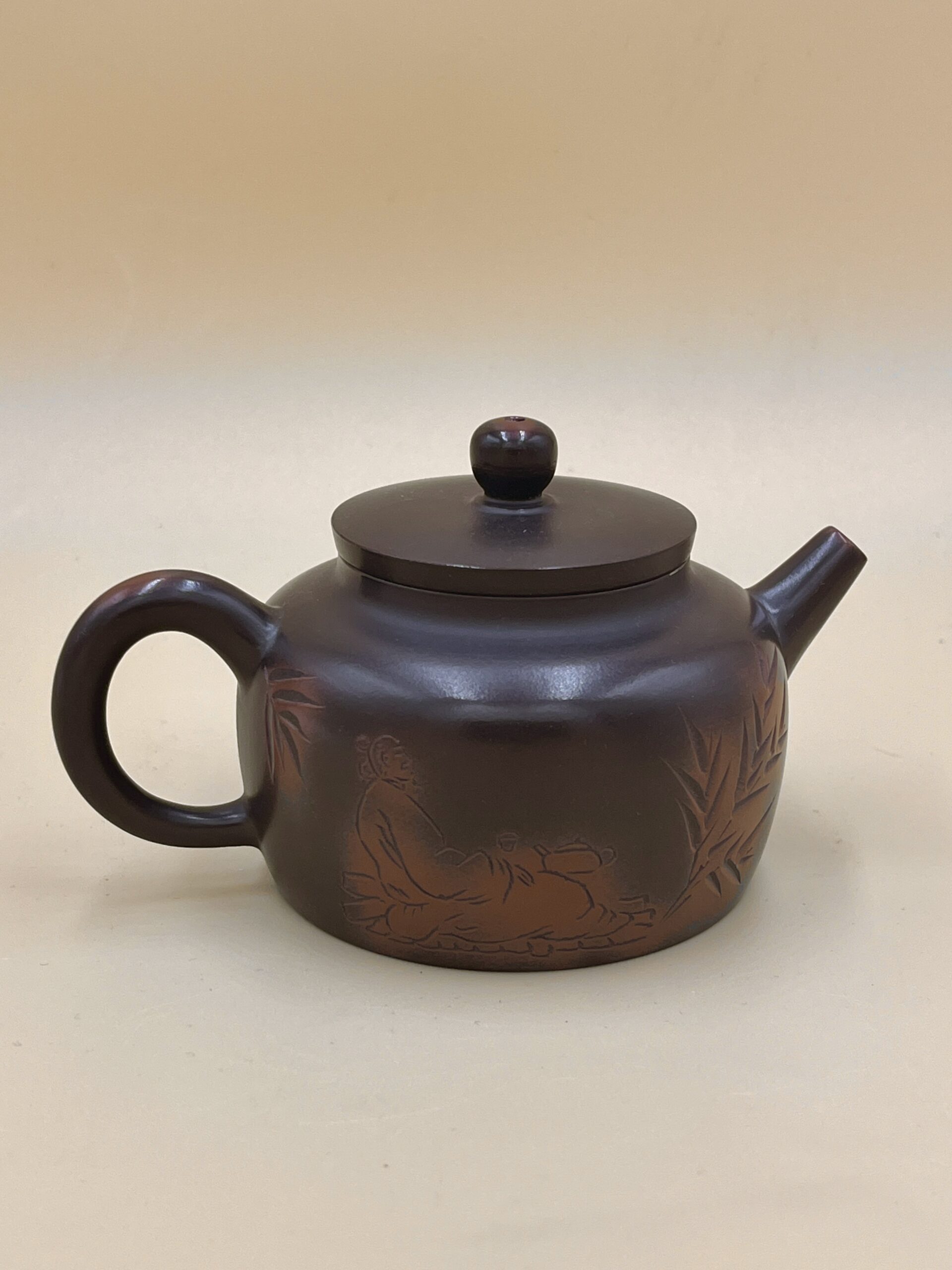 Классический по окрасу чайник керамики Нисин из Цзиньчжоу, провинция Гуанси. Классическая, но скруглённая к низу, форма Дэчжун – “Колокол Добродетели”.
