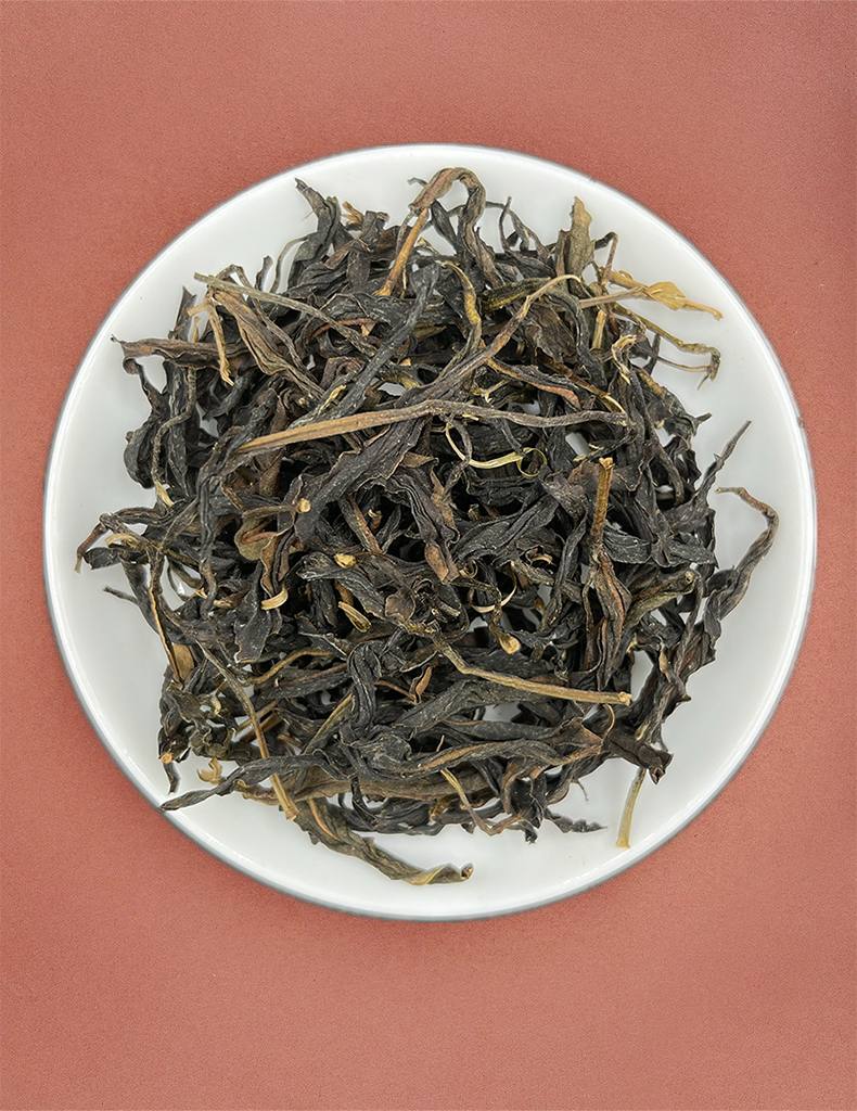 Экспериментальный сорт от Не Цюнь, есть точно такой же только без габа-ферментации Вулканический Улун из Тэнчун по технологии шена. Этот габа чай средней ферметации и прогрева, листья и побеги среднего размера аккуратной продольной скрутки.